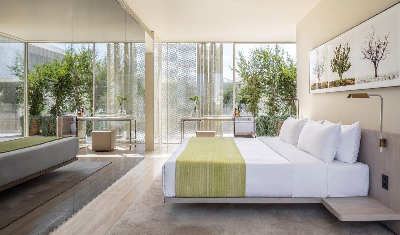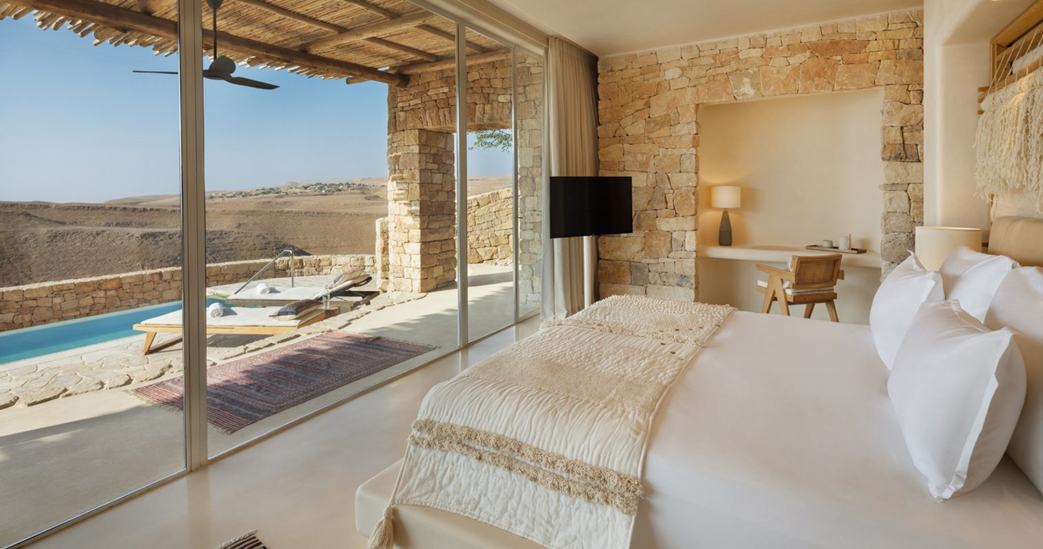 Deep dive into the history of Jerusalem complete, it’s time to head south into the Judean Desert, stopping off at Ein Gedi en route. A lush green oasis made up of a series of waterfalls and freshwater pools, it makes for the perfect point to stop off, stretch your legs – and perhaps even go for a dip. Keep your eyes peeled too, for you may catch a glimpse of a passing ibex or two. From there, you’ll continue onto the UNESCO mountaintop ruins of Masada and the healing waters of the Dead Sea as you get to know Israel’s interior. Having soaked in the views and the salt water, you have only Six Senses Shaharut to go from there. A stunning hotel built into the side of a dramatic cliff and overlooking endless horizons, it’s just you and the endless Negev wilderness here. Settle in and spend the next three nights flitting between the property’s camel ranch and local kibbutzim and dining beneath the stars in an authentic Bedouin experience.