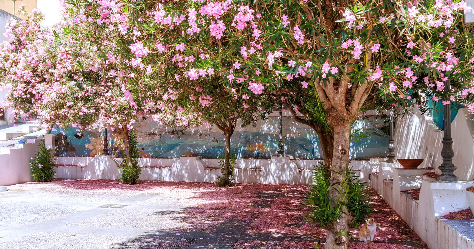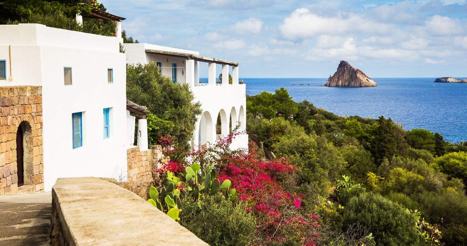 Now, for some serious relaxation, escape to the Isle of Salina: the greenest and most laid-back island. Stay at the stunning Capofaro and spend the next few days zipping around rugged hills on the back of a Vespa, meandering along its two extinct conical volcanoes, and kicking back at the beautiful bay of Rinella with its black sands and pink, white and blue houses. Total bliss. Hungry? The capers here are an absolute must, and you should also try the fresh fish and sugary Malvasia dessert.