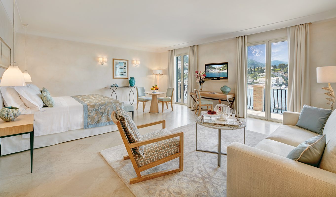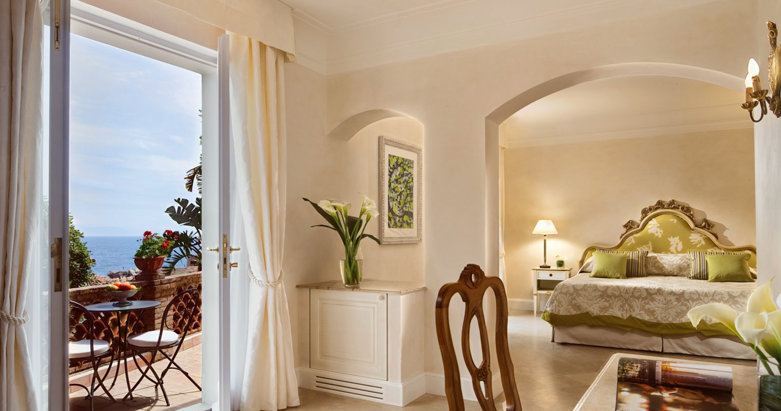 Classical elegance oozes from each and every one of Belmond Villa Sant’Andrea’s 71 rooms and suites. Muted, neutral tones create a haven of calm with draped fabrics and rich silk adorning the ornate beds and antique furniture. Nearly all the rooms and suites come with balconies or terraces overlooking the sparkling sea and rocky headlands of the bay.