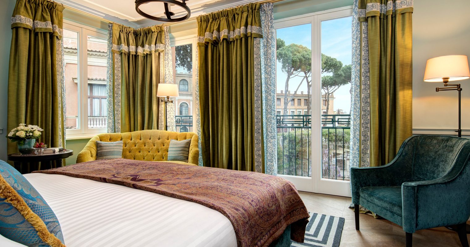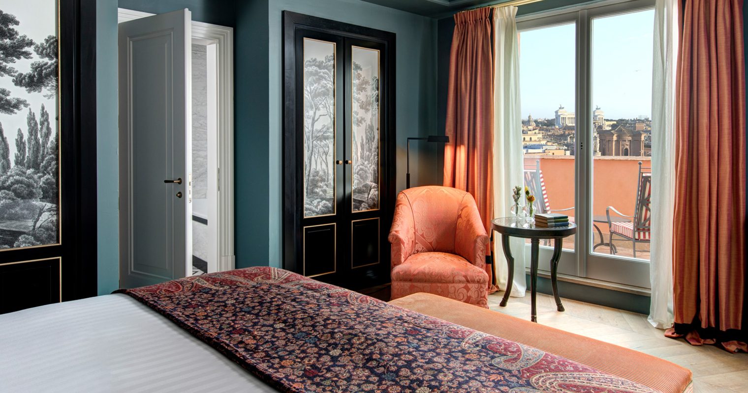 Hotel de la Ville is as sophisticated as it is playfully spirited, stepping away from the ancient city’s traditional form and towards a fresher, more stylish look. Artistic in design with opulent Indian throws and bursts of color accenting the décor, rooms present impressive views of Via Sistina or the charming hotel courtyard. Opt for a suite with its own private terrace, whose red pinstriped sofas, sun loungers and parasols offer your own oasis to unwind away from the bustle of Rome.
