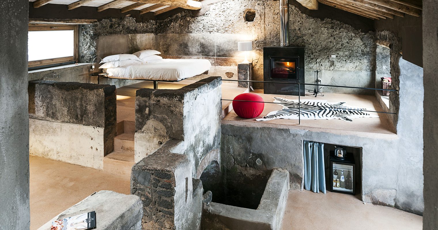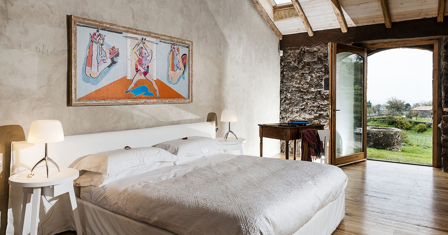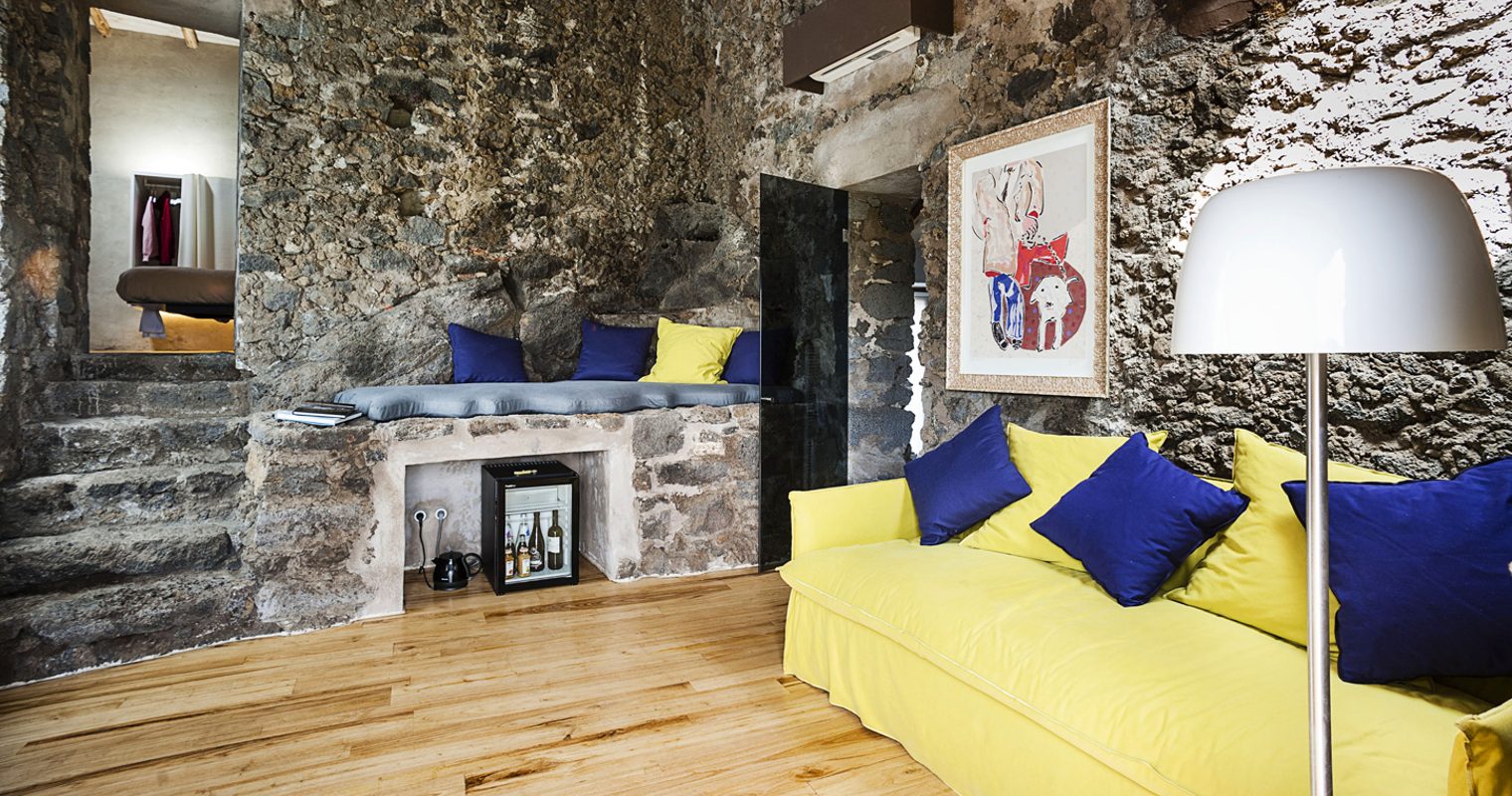 Lovingly revived following its stint as a monastery, rooms at Monaci delle Terre Nere harmonise traditional rustic elements with colorful modern flourishes. Elegant and spacious, expect pastel hues, oak-beamed ceilings and lava stone walls paired with sleek Italian furnishings and showstopping views. For the ultimate retreat, escape to the secluded Sontuoso suite, boasting a private garden and a king-size bed atop an old palmento wine press.