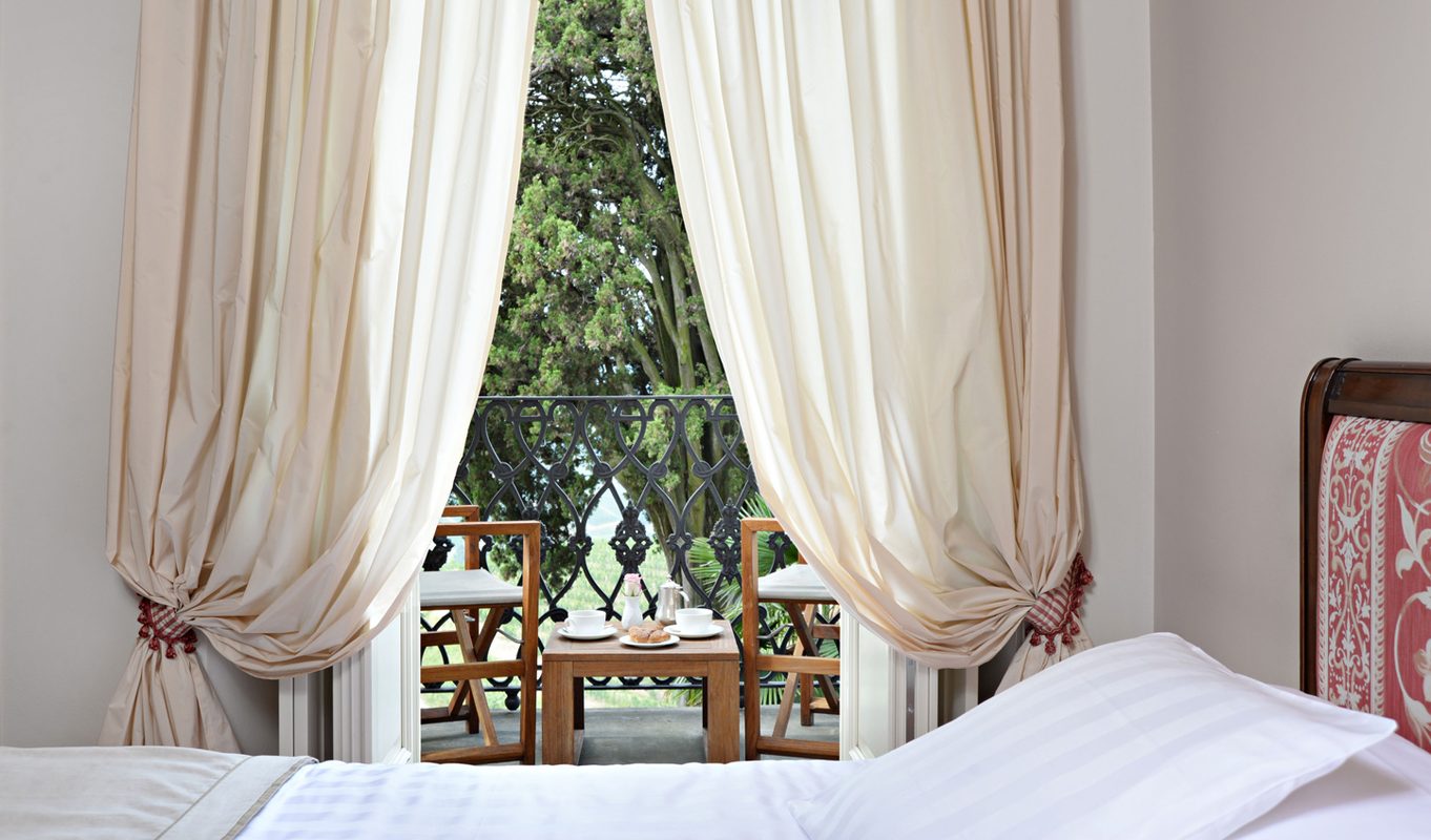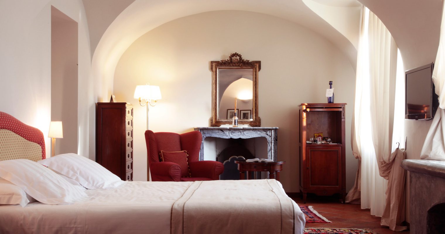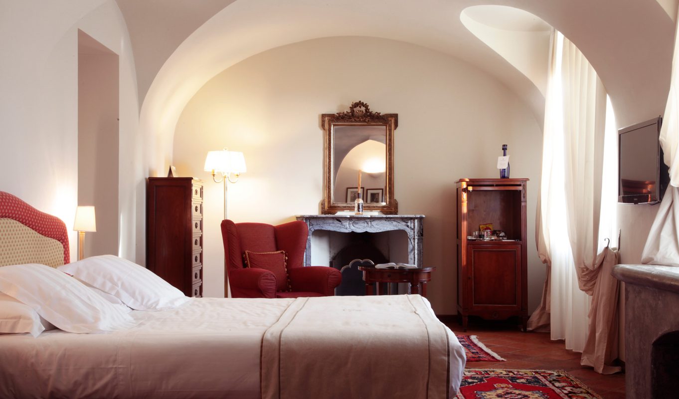 The 36 rooms are split across the old monastery and the newer San Luigi Villa, with each bearing its own distinct personality. The monastery rooms now take the place of the original cells, sacristy and stables with exposed beams, marble fireplaces and inlaid floors lending added character. Despite the centuries however, the rooms remain light-filled with views out across the hills. The San Luigi suites meanwhile offer tranquil hilltop escapes in a blend of contemporary design and ancient tradition.