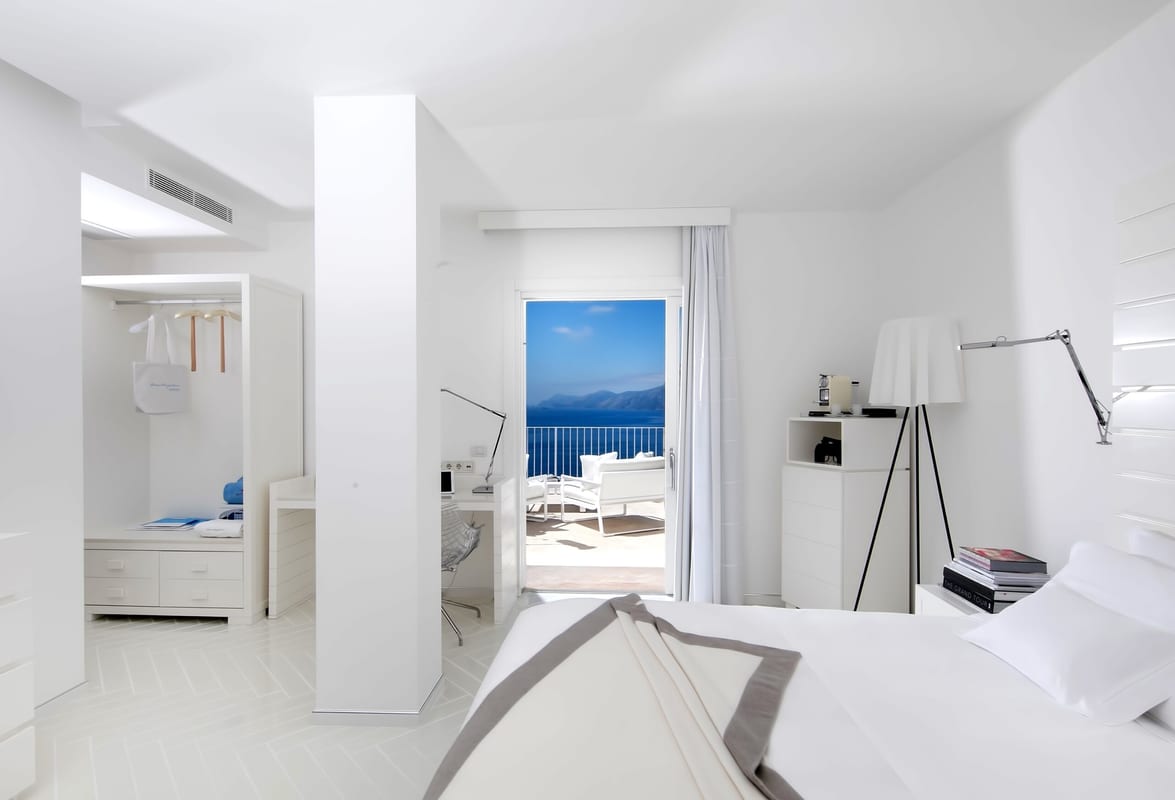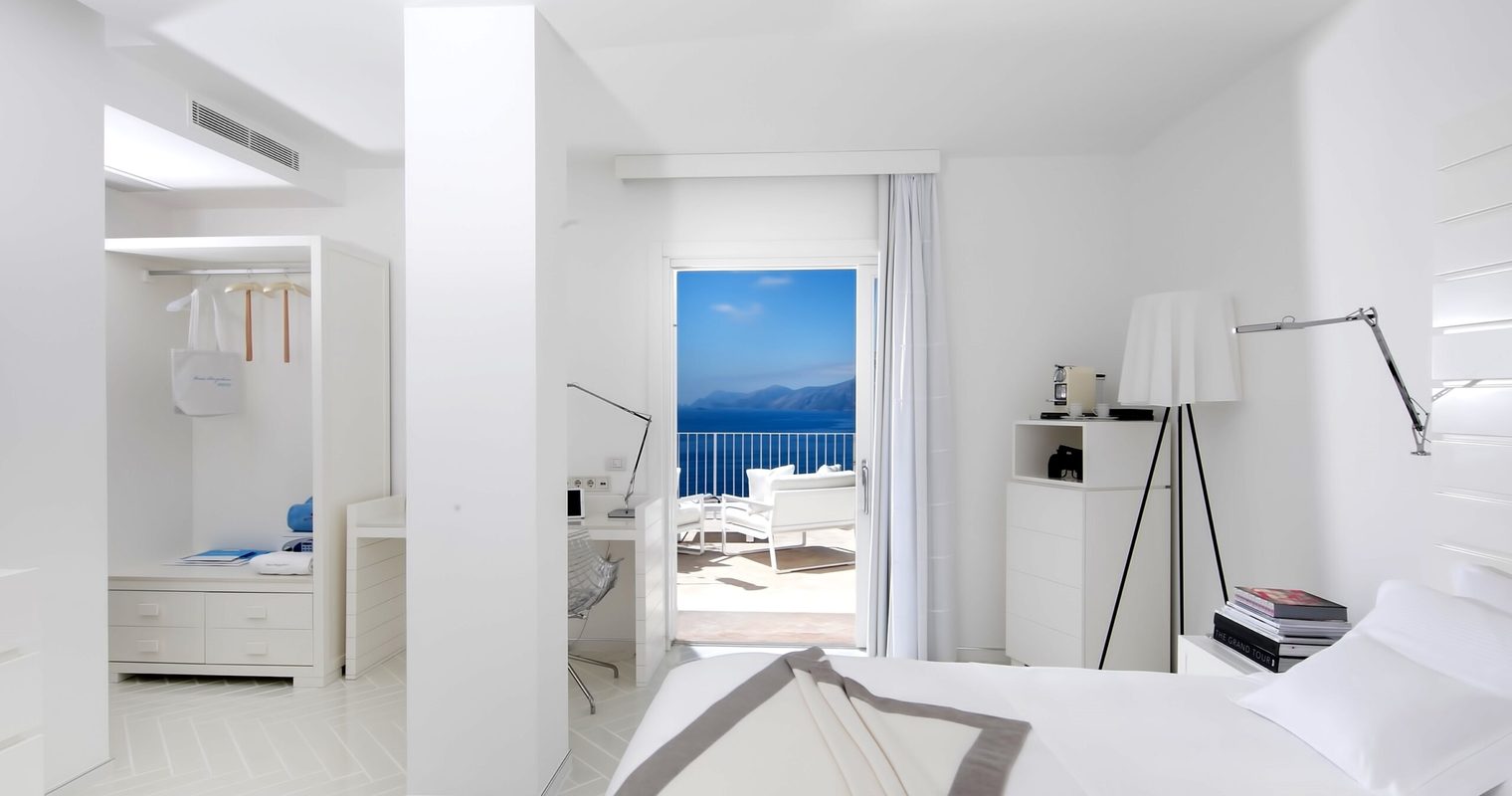 Finally, you’ll check in to the dazzling Casa Angelina, perched on the cliff face of Praiano. The pure white color scheme enhances the turquoise shades of the sea and you’ll see the silhouettes of the mountains from the comfort of your king-sized bed. From dining on the terrace to relaxing by the pool, you’ll seemingly do it all suspended somewhere between sky and sea.
