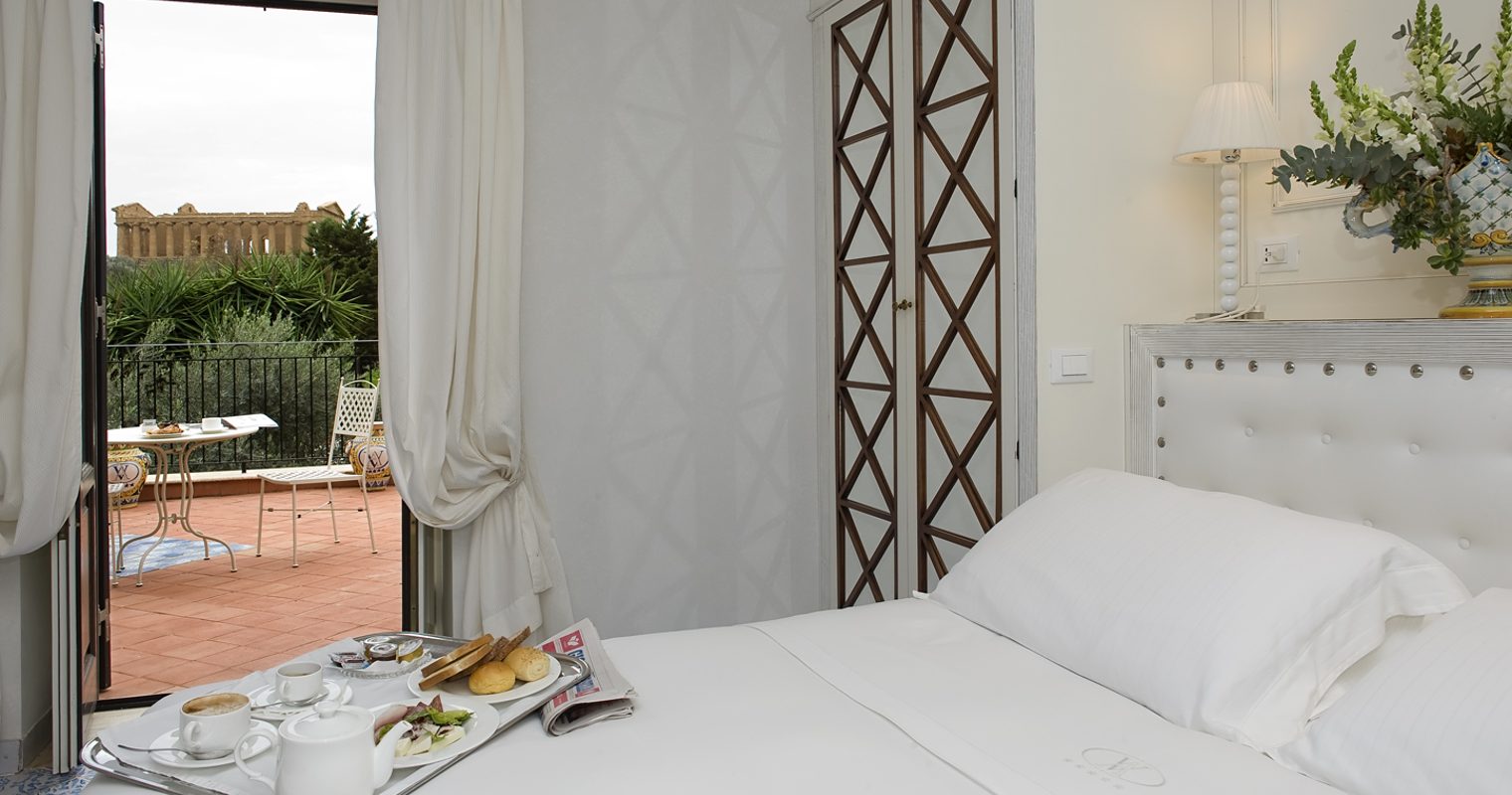 Nowhere does ‘room with a view’ quite like Villa Athena. Overlooking the Temple of Concordia and surrounding hillsides, the temple view rooms offer timeless luxury, whilst set in the heart of a Mediterranean garden, Junior Suites ooze tranquillity. Classically elegant, each of the 27 rooms and suites features traditional touches balanced with contemporary comforts such as marble bathrooms and cozy living areas. Our pick of rooms though? It has to be the Villa Suite. French doors opening up onto a private terrace overlooking the Temple of Concordia, it’s quite simply jaw-dropping.