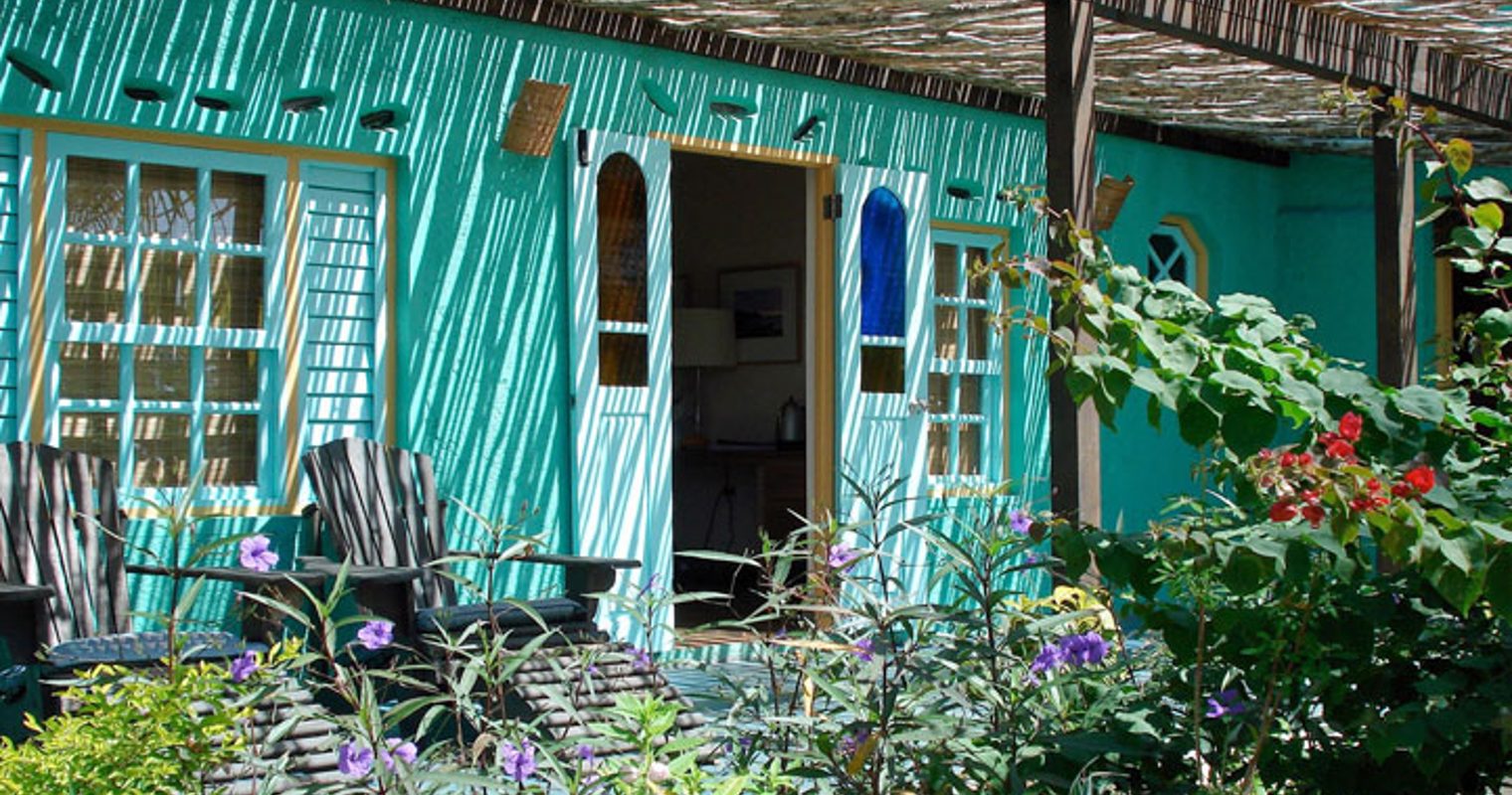 Jakes is more of a community than a resort. There’s an eclectic selection of villas, each with different architecture, decor and stories. From afar you can see the blue-washed villa of Octopussy, its sun-dappled day bed on the roof terrace highlighted by the drapes gently swaying in the breeze. Below, a queen size bed with patchwork quilt awaits, with a headboard doused in fairy lights, and a stain glass windows casting a rainbow. The fearless color combinations fit perfectly with the soul of this lively Caribbean island.