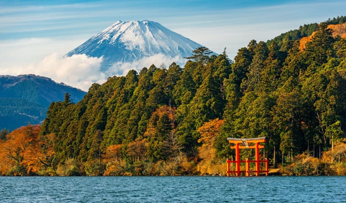 Framed by the magnificent mountain scenery of Mt Fuji, Hakone – nestled south of Tokyo on Sagami Bay – offers a calming escape from the bustle of Tokyo and the history of Kyoto. Centerd on the lake of Ashino-ko, from which the iconic gold-red torii rises, we’ll arrange for you to explore castles, sample incredible seafood, and kick back in some of the country’s most spectacular hotels.