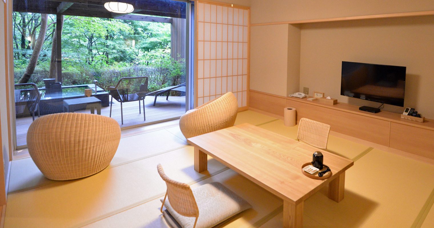 No two rooms are the same at Byakudan, meaning you are guaranteed to find something to your liking. Authentically Japanese, they vary according to tatami, that is, the number of bamboo mats that cover the floor. Alongside the tatami, a minimalist decor helps bring that signature Japanese style whilst cloud-like bedding adds western comfort. Completing the experience, you’ll find open-air onsen baths out on private terraces backed by calming views and scented by that ever-present white sandalwood. In short, you’ll discover a private sanctuary you’ll never want to leave.