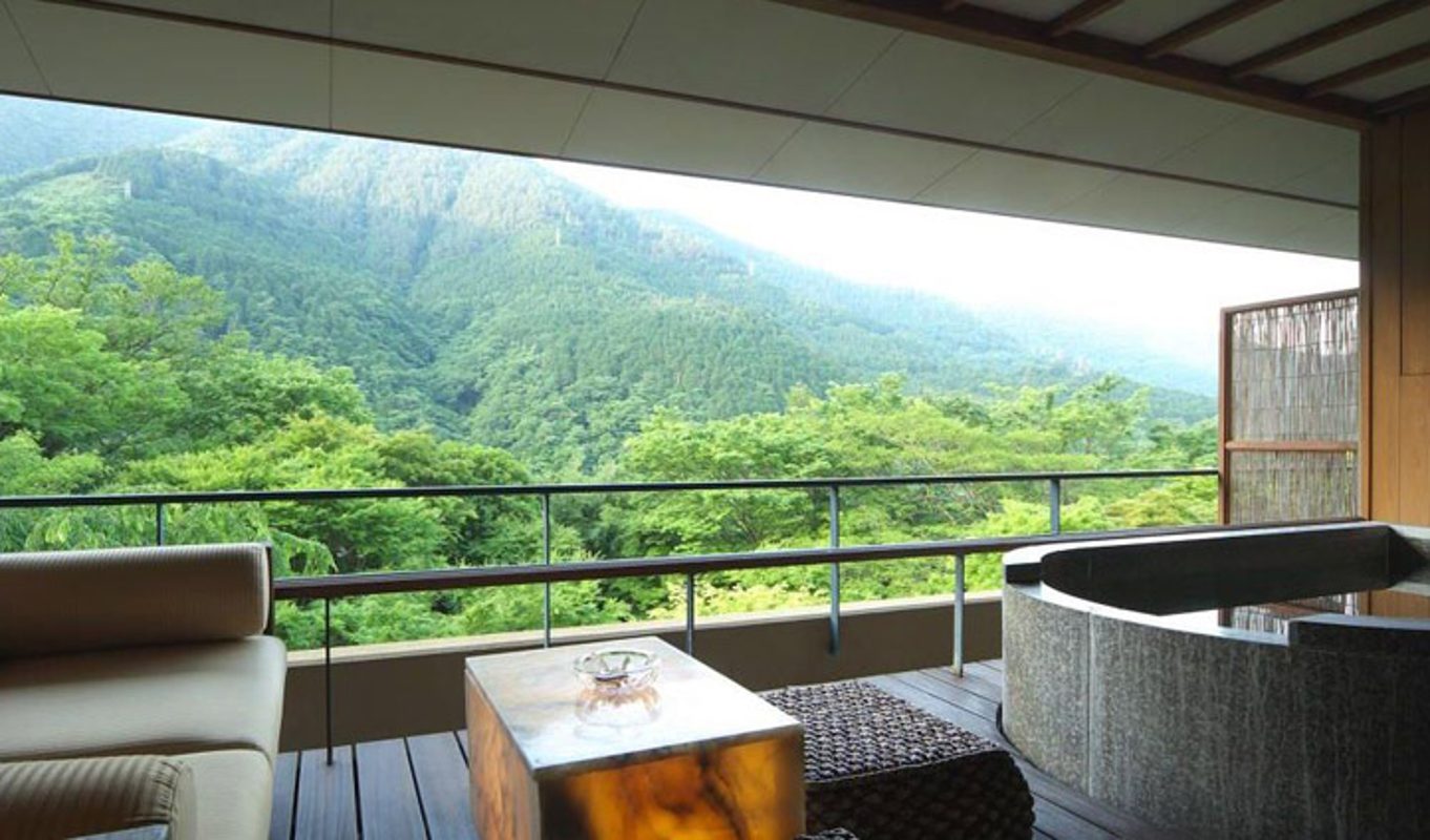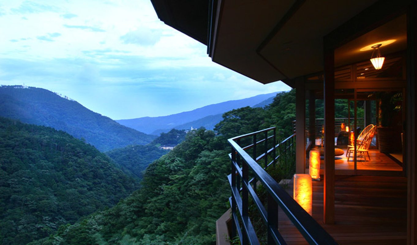 Rooms are typically in traditional Japanese style with open spaces featuring low furniture, tatami-mats and futon mattresses, however there are 3 western styled ones, featuring more modern furniture. Each room has their own butler service for each delicious meal and a private balcony overlooking the dramatic vistas.