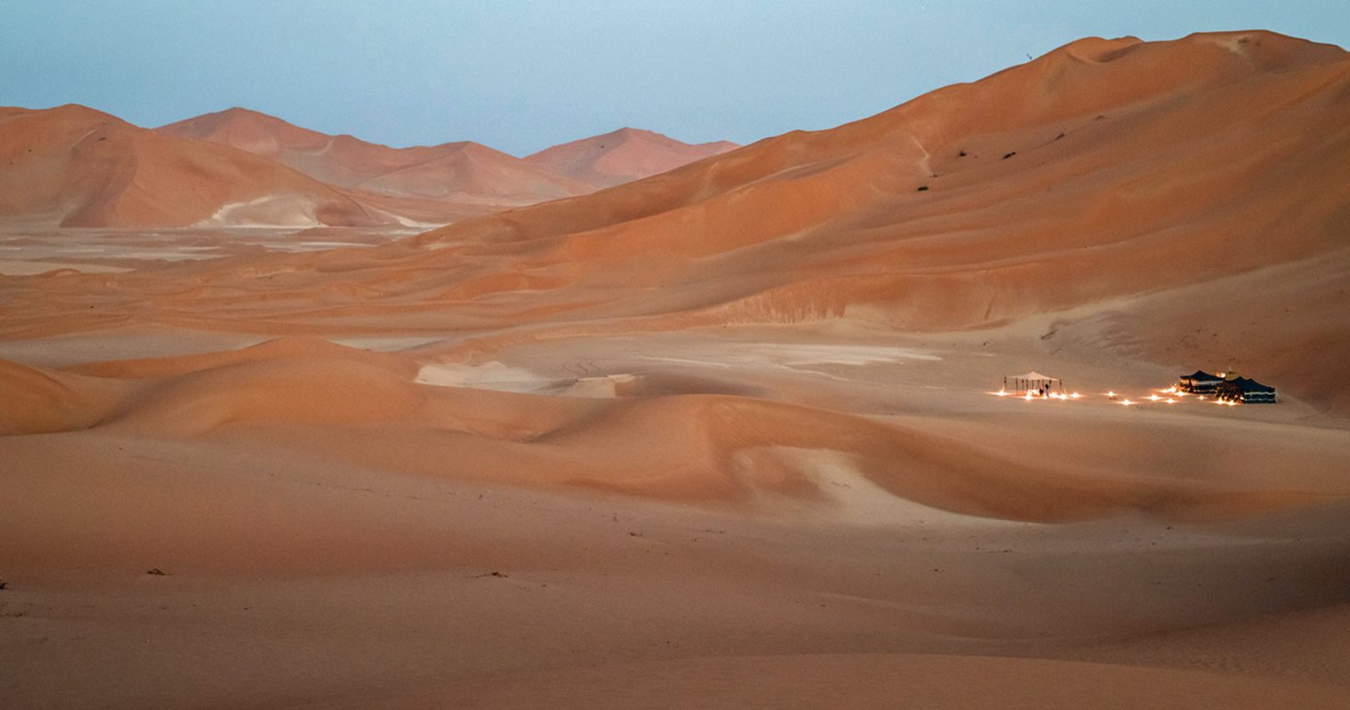 After three nights at Alila, the scenery will take a softer turn as you head onto the vast mass of undulating red and white sand dunes that make up Wahiba Sands. Crashing across the dunes, with the sun causing the colors to dance before you and the wind whipping up puffs and whirls; it’s a photographer’s dream. So too is your home for the night at a luxurious desert camp. A million miles from city life, you’ll spend tonight beneath canvas in a lantern-lit Bedouin tent with dinner served up beneath the stars. Spend the morning spiking your adrenaline with a spot of dune bashing before taking a desert dip at Wadi Bani Khalid where the village lies hidden in the mountain and the wadi waters run clear and blue.
