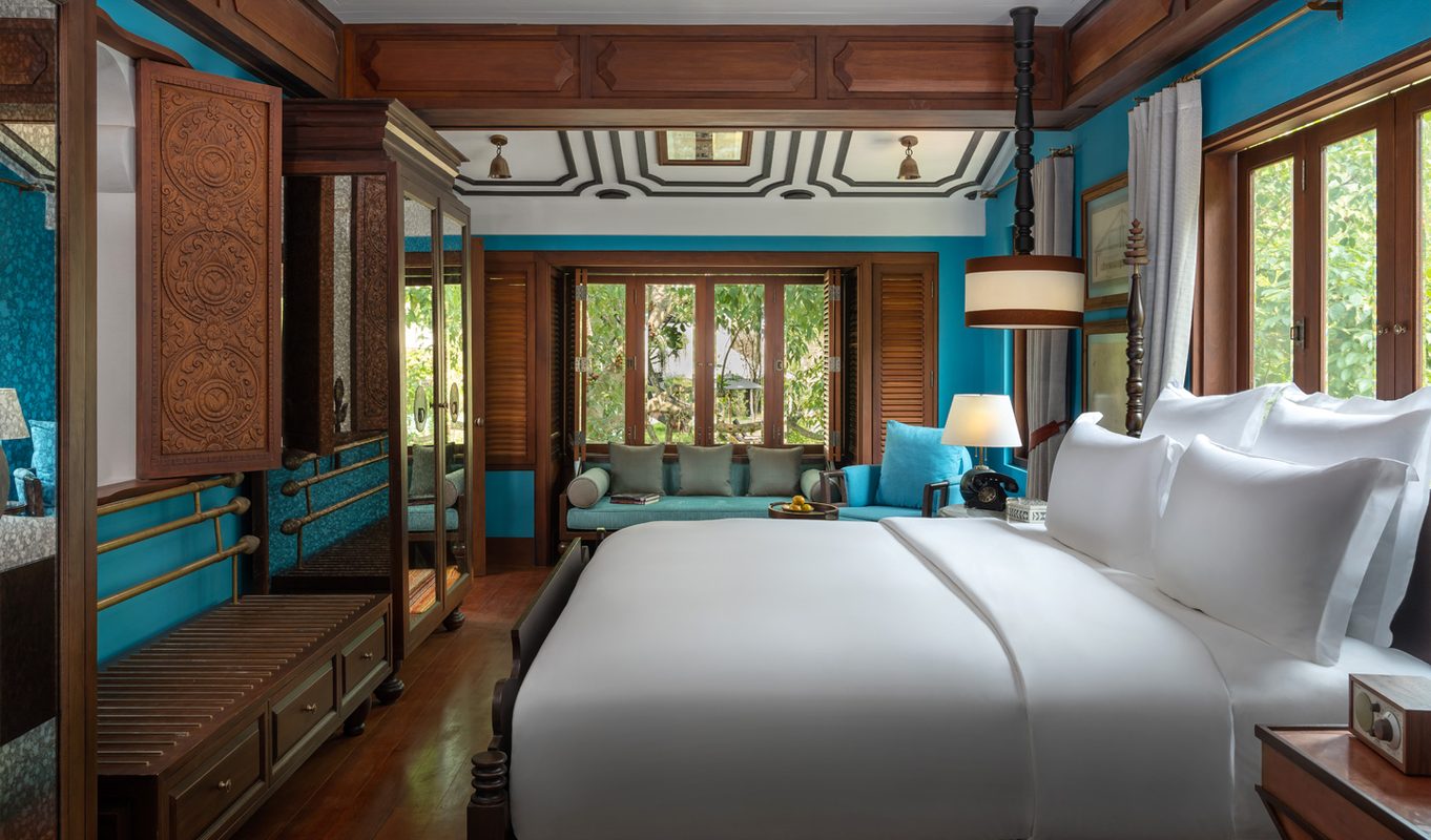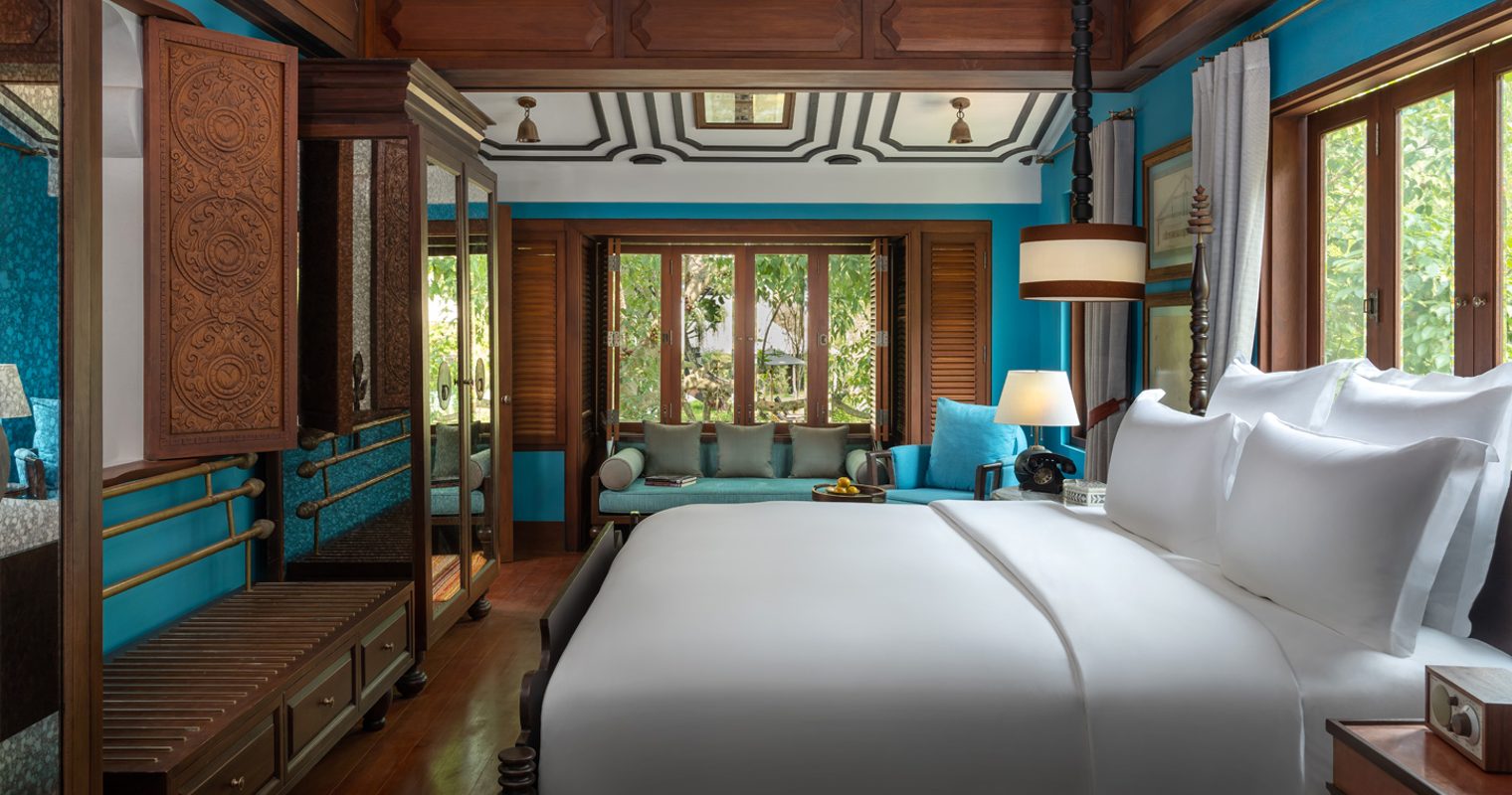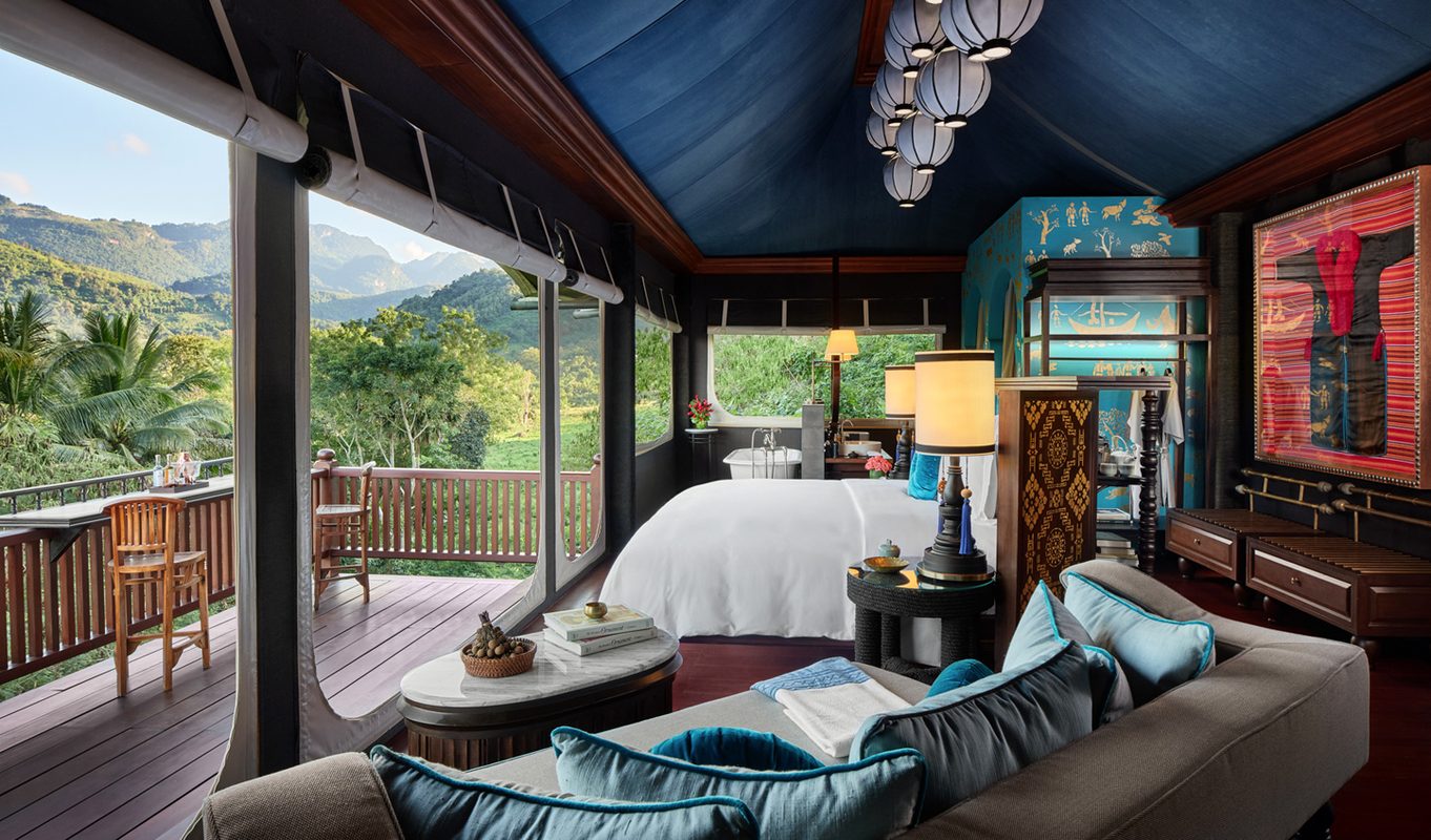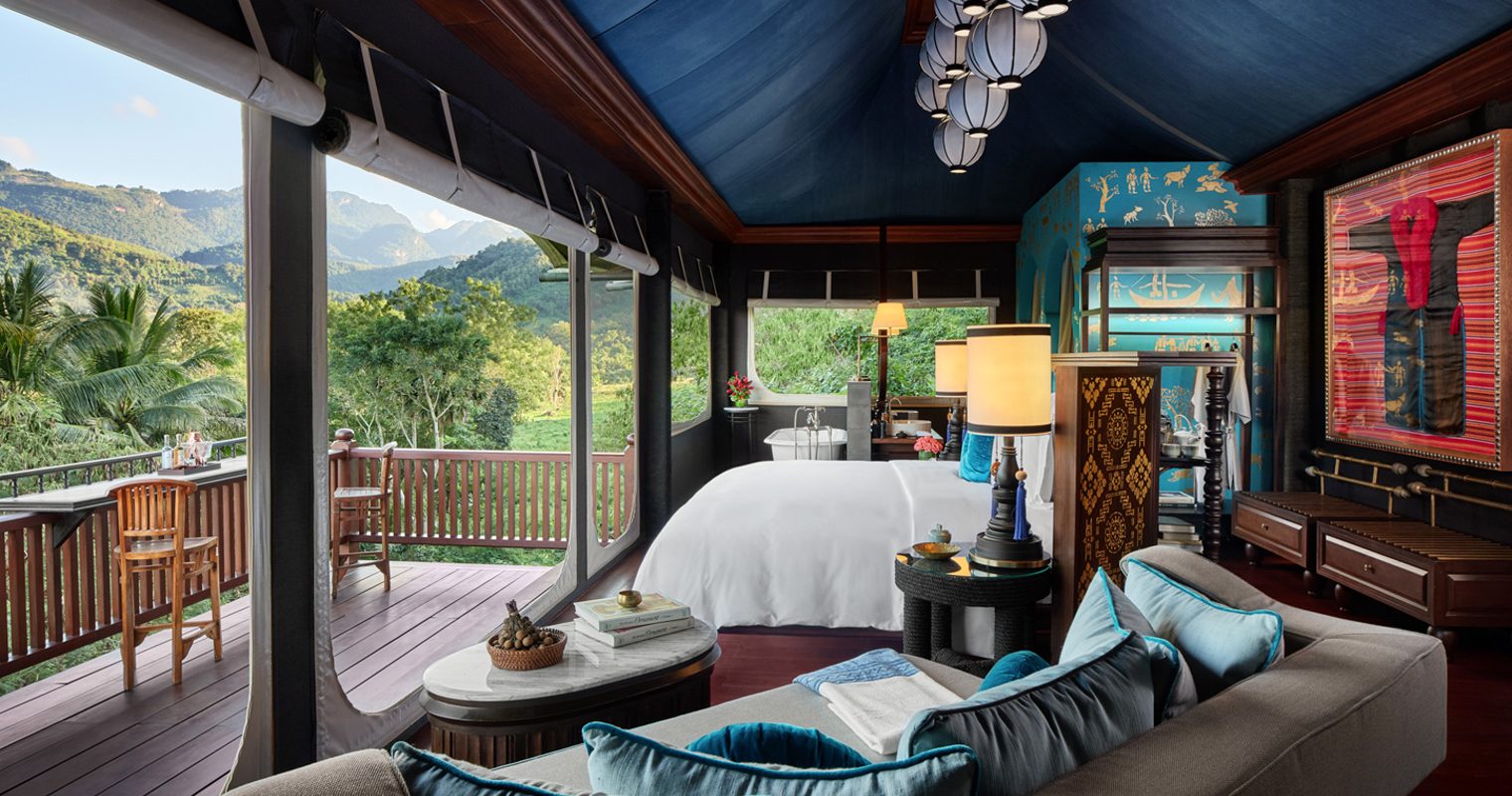 The 23 rooms at Rosewood Luang Prabang range between everything from Riverside Rooms and Suites, Waterfall Pool Villas and luxurious Hilltop Tents. All are beautifully designed from top to bottom in a fusion of Lao tradition and French style. In keeping with the jungled surroundings, rain showers sit outdoors whilst Waterfall Pool Villas feature huge wooden bathtubs and private pools. To really get close to nature though, the Hilltop Tents come hard to beat with their king-sized beds looking out over the mountains.