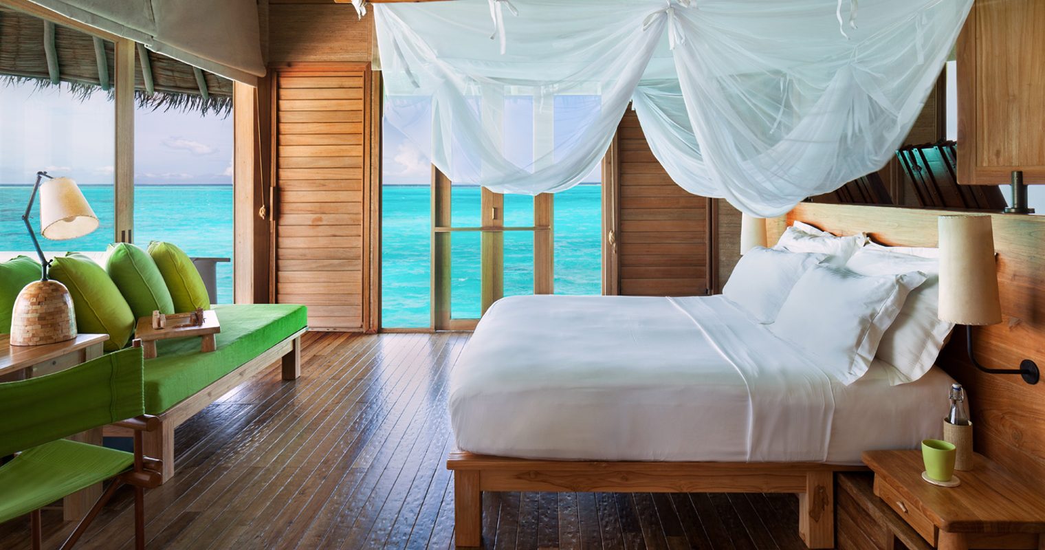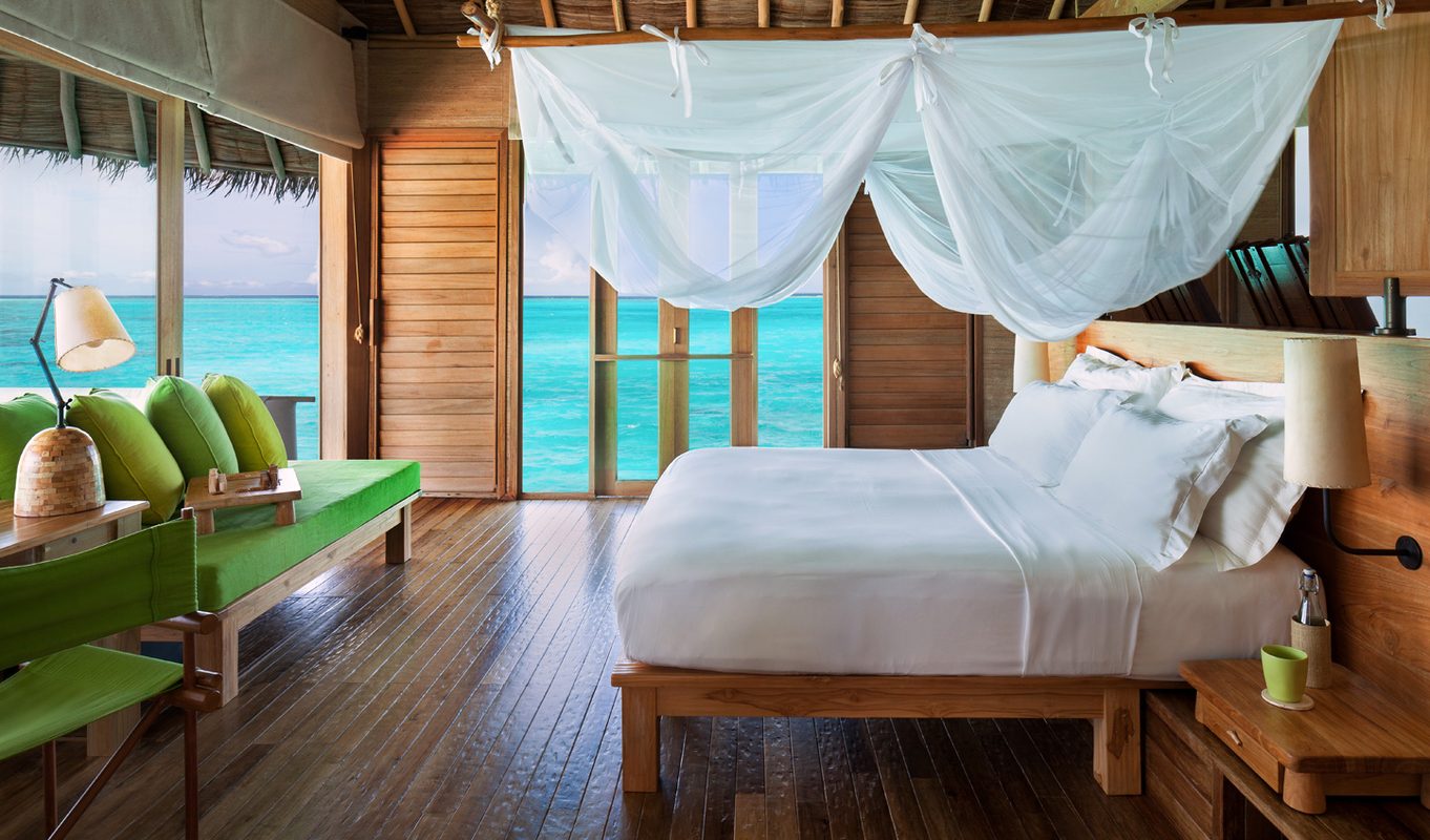 A representative will meet you at Male International Airport (the gateway to the Maldives) where you’ll then board a short 45minute flight to the unspoilt Laamu Atoll. The final stage is a 25-minute jaunt on a speedboat, grazing over the calm Indian Ocean. So to put it plainly, you are in the middle of nowhere, but it couldn’t be more appealing.