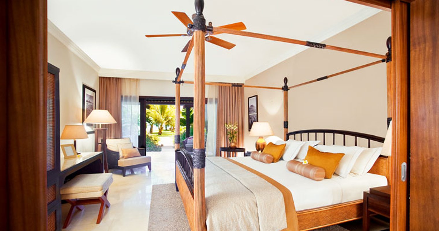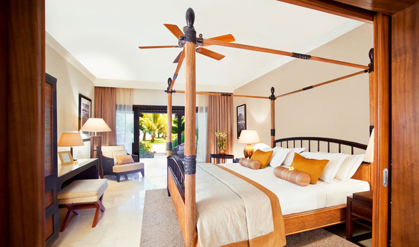 Continuing the fantastical element to your stay are the beautiful low-slung peaked huts, which fitted with sliding wooden doors, marble bathrooms and slow-turning fans, lend an air of effortless glamor to the interior. Opt for the Honeymoon Junior Suite, where along with a luxurious whirlpool bath and separate dressing room, you will have your own private balcony where you can watch the warming Mauritian sun as it sets over the Indian Ocean.
