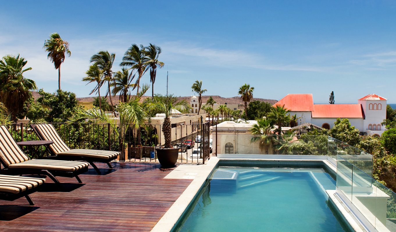 We love the juxtaposition of a tranquil boutique hotel caught in the middle of a historical bohemian village like Todos Santos. The picturesque rooftop sky deck is not to be missed. Caught between the Sierra de la Laguna Mountains and the Pacific Ocean, take in the view while cooling down in the Venetian tiled pool or sipping cocktails from the rooftop sky bar and lounge. Glass panels line the wide open sky deck as no details were overlooked in taking advantage of the 360-degree view.