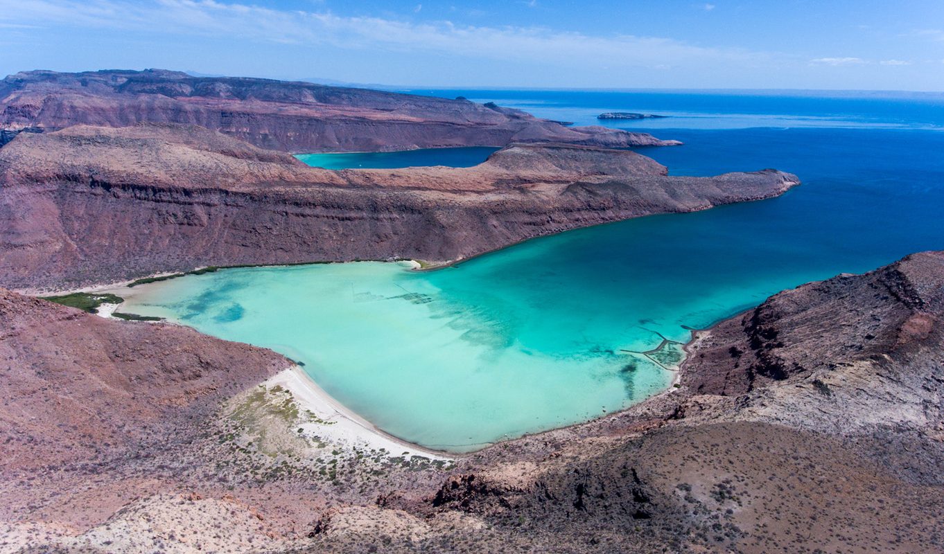 Touching down in Los Cabos, you’ll head north through the cacti-dotted desert to Baja Sur’s capital, La Paz. Here, you’ll check in at the charming Baja Club Hotel – a beautifully restored 20th-century villa featuring a spa, rooftop bar, and dazzling views of the Sea of Cortez. The perfect base from which to explore the area’s wealth of natural wonders, you’ll spend the next few days choosing between epic underwater adventures and blissful beachside relaxation. Or both.
