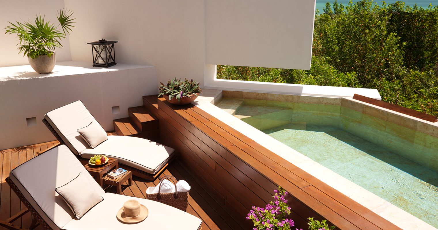 With a choice of 11 different types of suites spread out across the property, you’ll be able to find the perfect room to suit your needs and style. Whether nestled in the sand or suspended over the lagoon, each spacious suite is immaculately dressed with gorgeous, modern furniture and a hint of Mexican influence. Outside, heated plunge pools await while a butler service is on hand to make sure every need is taken care of. Stunning bathrooms encompass both indoor and outdoor showers while soaking tubs with incredible views of the beach or the lagoon, immerse you in the pristine nature of your surroundings.