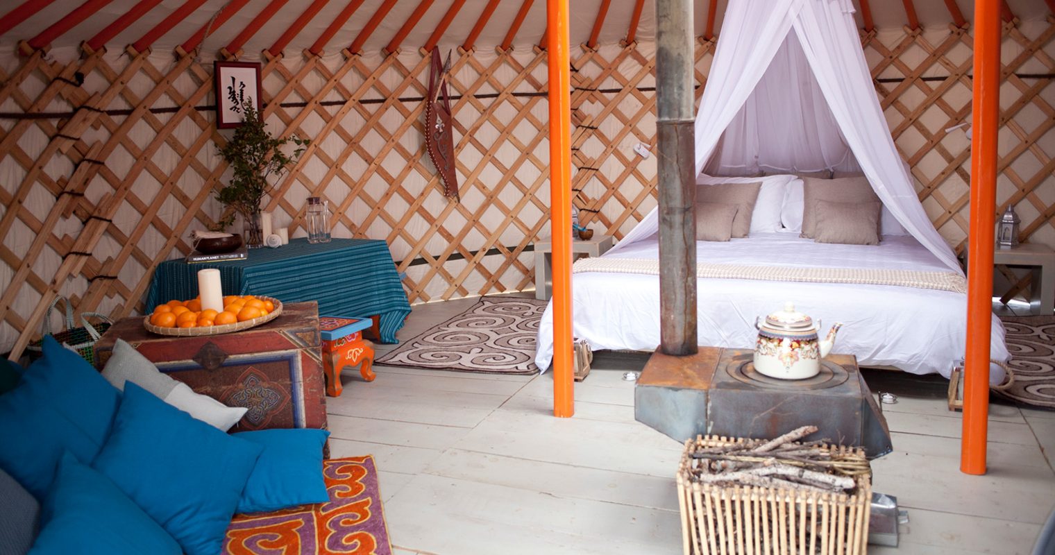 The next morning, you’ll head through the high valley walls in Yolyn Am National Park into its icy canyons before flying back to Ulaanbaatar and heading out east to the iconic statue of Chinggis Khaan on horseback. Here, you’ll make like Khan himself and saddle up your steed to make your way by horseback through Gorkhi Terelj National Park. Ride over mountain passes, across a river and through wooded glades and flowering meadows, before coming to the site of a Shaman Ovoo, where it is customary to add a rock and a circle for good luck. After several hours’ horse trekking, your camp tonight brings a touch of eco-luxury. Tucked away in a protected area of Gorkhi Terelj, Jalman Meadows Ger Camp offers a tranquil getaway in the depths of Mongolia where you can spend your days rafting along the Tuul River before relaxing in the library ger with a traditional game of Ankle Bones.