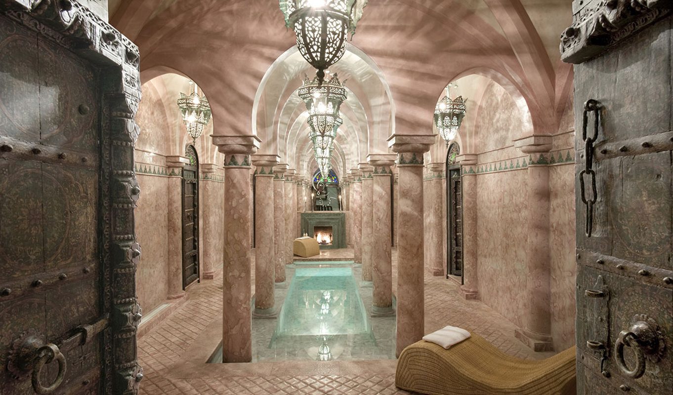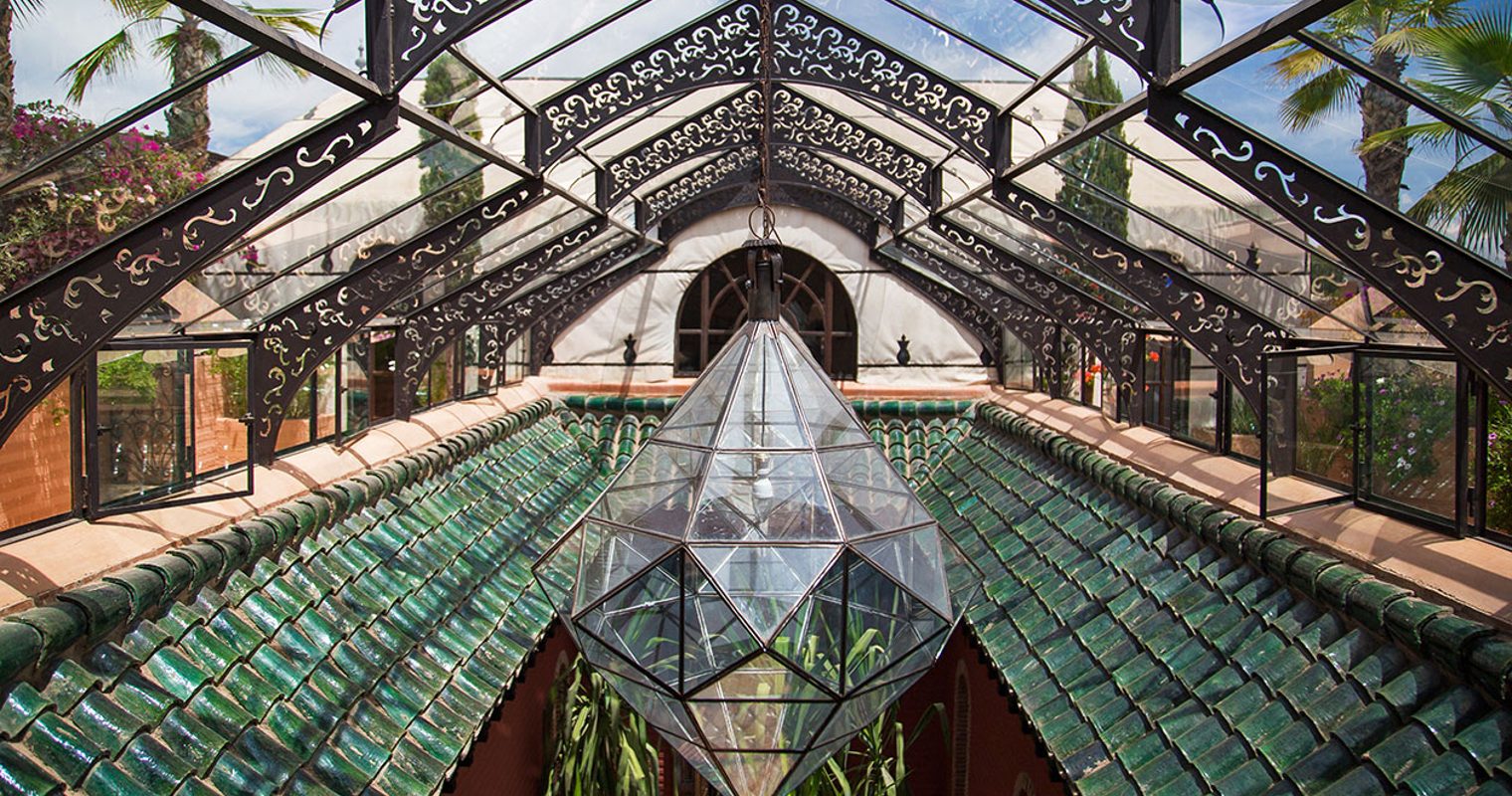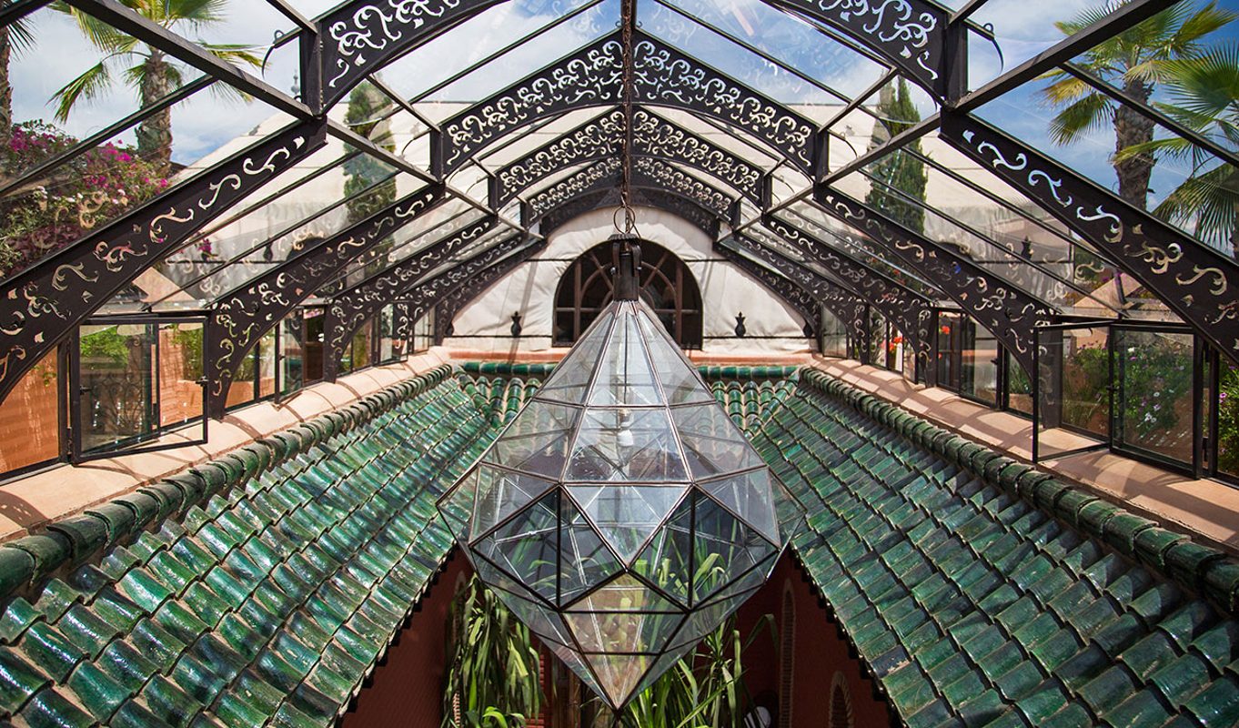 The tranquility continues on in your room where spacious interiors and traditional design dominate. Detailed décor set the tone in the 28 bedrooms where hand-painted ceramics and centuries-old textiles add to the old-world charm. The bedrooms in each of the riads look into expansive interior courtyards. We love the crystal domes that hover over each of the riads, flooding the courtyards with dramatic lighting and adding a touch of architectural elegance to the rooftop.