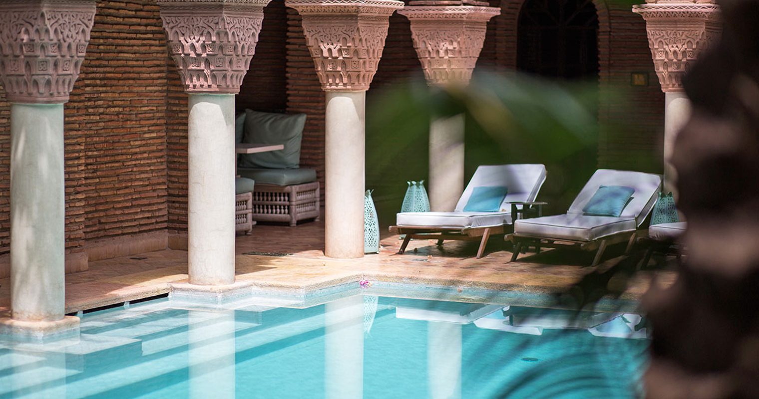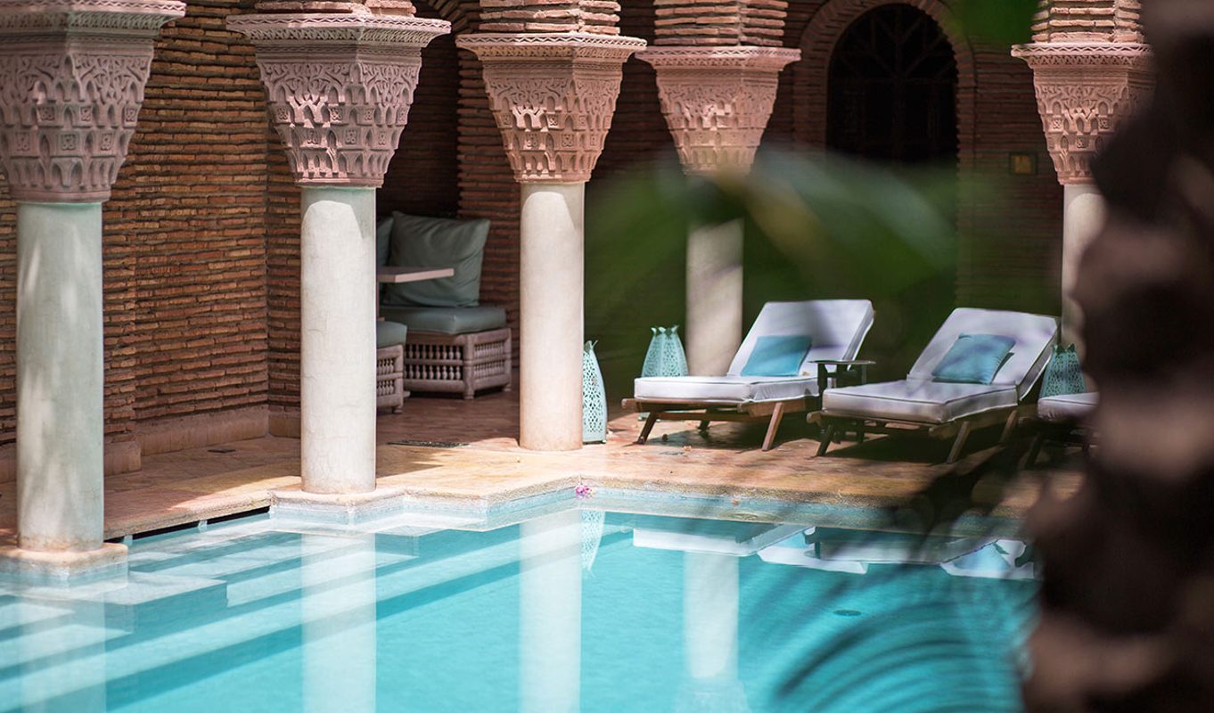 The experience begins the moment you step into the walled courtyard of La Sultana, shutting the busy streets behind you. A carpet lined with beautifully hand-crafted lamps leads you through a grand brass door. From there you will explore a collection of historic Moroccan riads, all presented in unique styles, full of detailed wood-work, ornate archways and meticulously maintained gardens. Rooftop dining, gorgeous pools and a traditional marble-clad Hamman spa ensure the luxury touches aren’t missed.