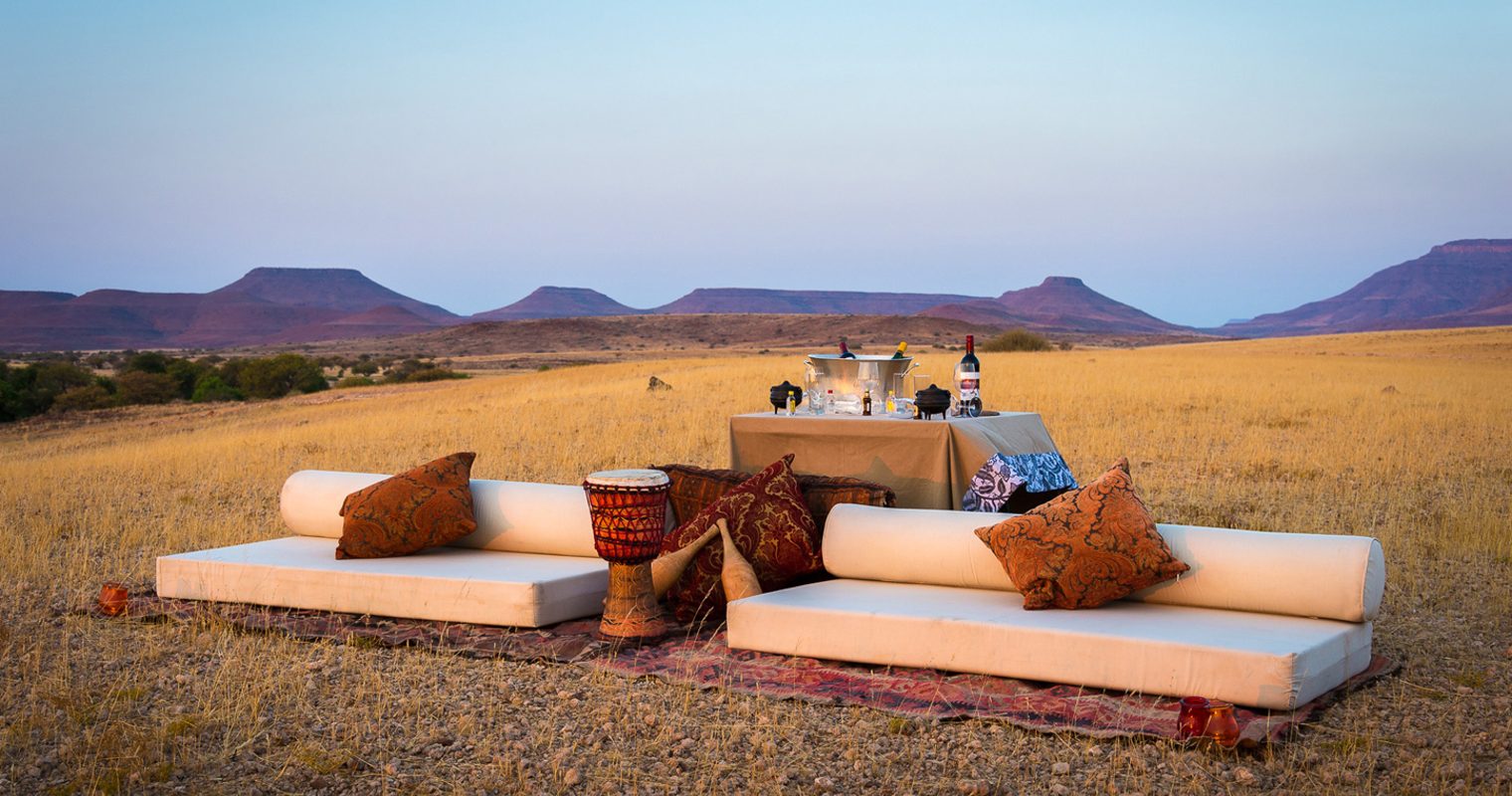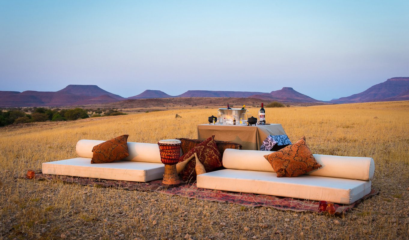 Desert Rhino Camp lies amongst rolling, rocky hills of the 450,000 hectares Palmwag Concession in northern Damaraland, which covers about 5,000km² between Etosha and the Skeleton Coast. For air travelers, the camp is just a 15-minute drive from the nearest airstrip. If you are arriving by road, you need to arrive before about 2.30pm, park your car at Palmwag Lodge and then take a further 3 hours nature drive to the camp; the perfect way to whet your appetite for the days ahead.