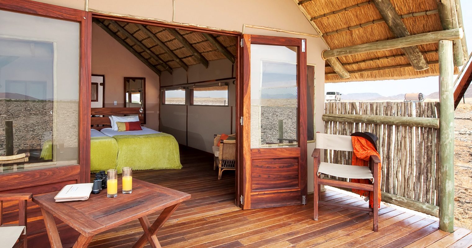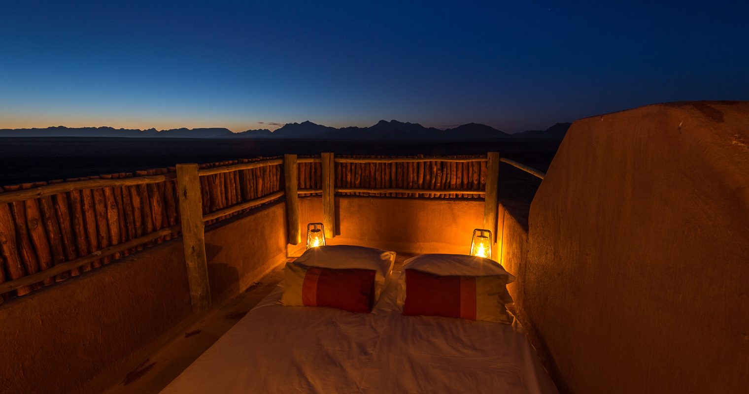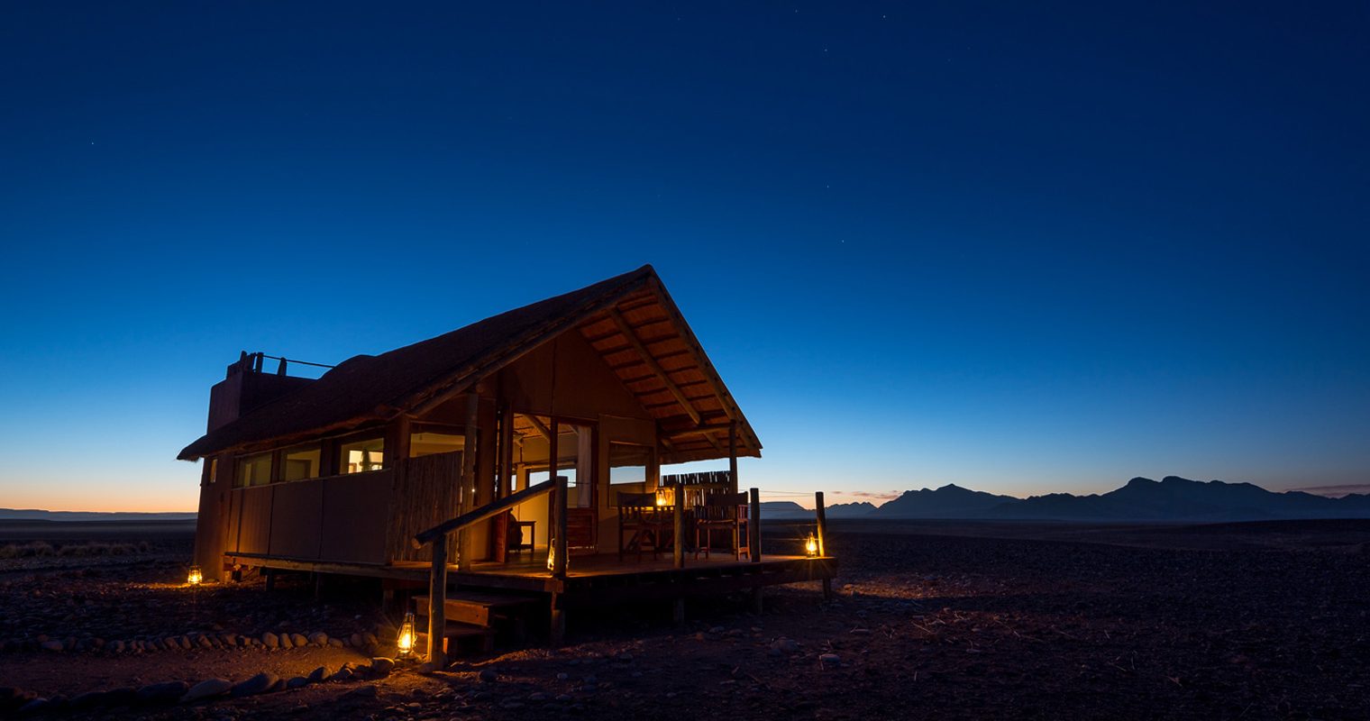 With just 23 thatched and canvas ‘kulalas’ purpose-built on wooden platforms to catch the cooling desert breeze and completed with rooftop decks for starlit sleepovers, it is clear that Kulala Desert Lodge is no ordinary safari experience. With larger tents to accommodate families and a beautifully furnished communal area with a cozy lounge, cooling plunge pool and wrap-around veranda overlooking the riverbed, Kulala is a ruby in the rose-gold Namib wilderness.