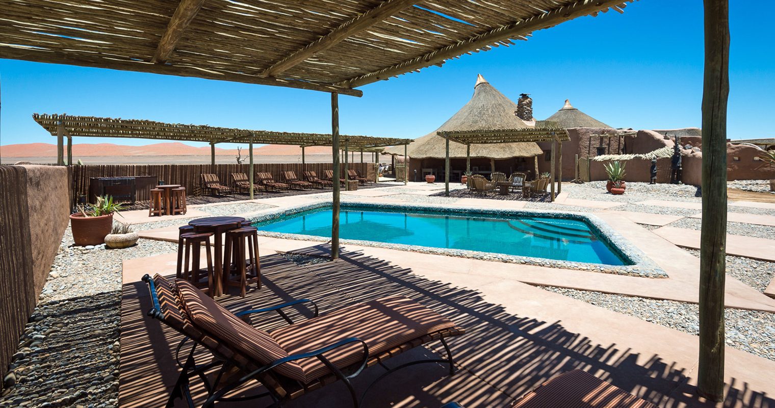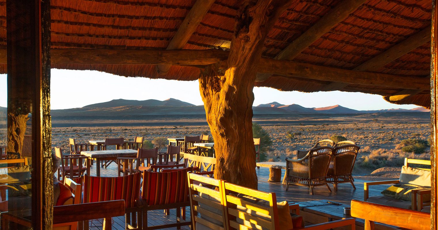 Located within the arid Namib Desert on the 37,000-hectare private Kulala Wilderness Reserve on the border of Naukluft Park, the feeling at Kulala Desert Lodge is one of complete tranquillity. You may be in the middle of the desert, but the lodge is easily accessible by one hour flight from Windhoek airport, with the tiny airstrip only 30 minutes drive from the camp. Alternatively, take the scenic route and explore Namibia with a five-hour drive through the stunning African landscape from Windhoek airport.