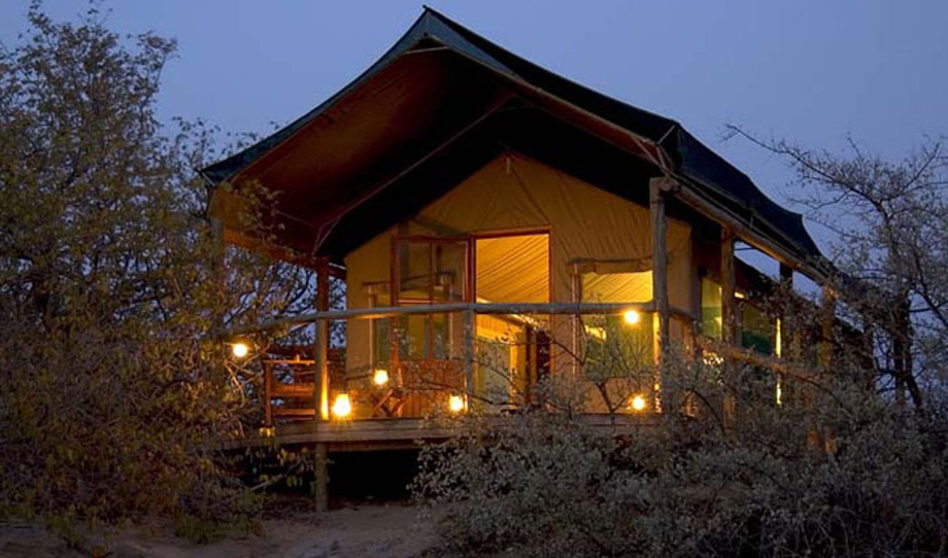 Each of the six luxury tents has individual heating and cooling controls, bathroom with bath, shower and restroom, direct dial phones, 24-hour room service, electric razor plugs, minibars, hair dryers, DS TV and a balcony. You’ll dine in the shade of an old, gnarled Leadwood tree which offers shelter from the elements, and spend your time traveling across harsh, rugged terrain in the camp’s 4×4 vehicles. A central area is made up of an open-plan lounge, bar and dining area with sweeping views of the desert.