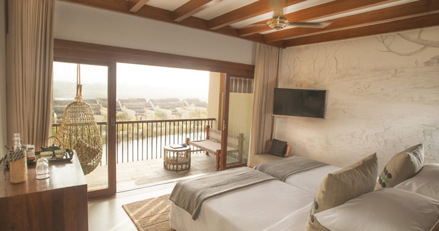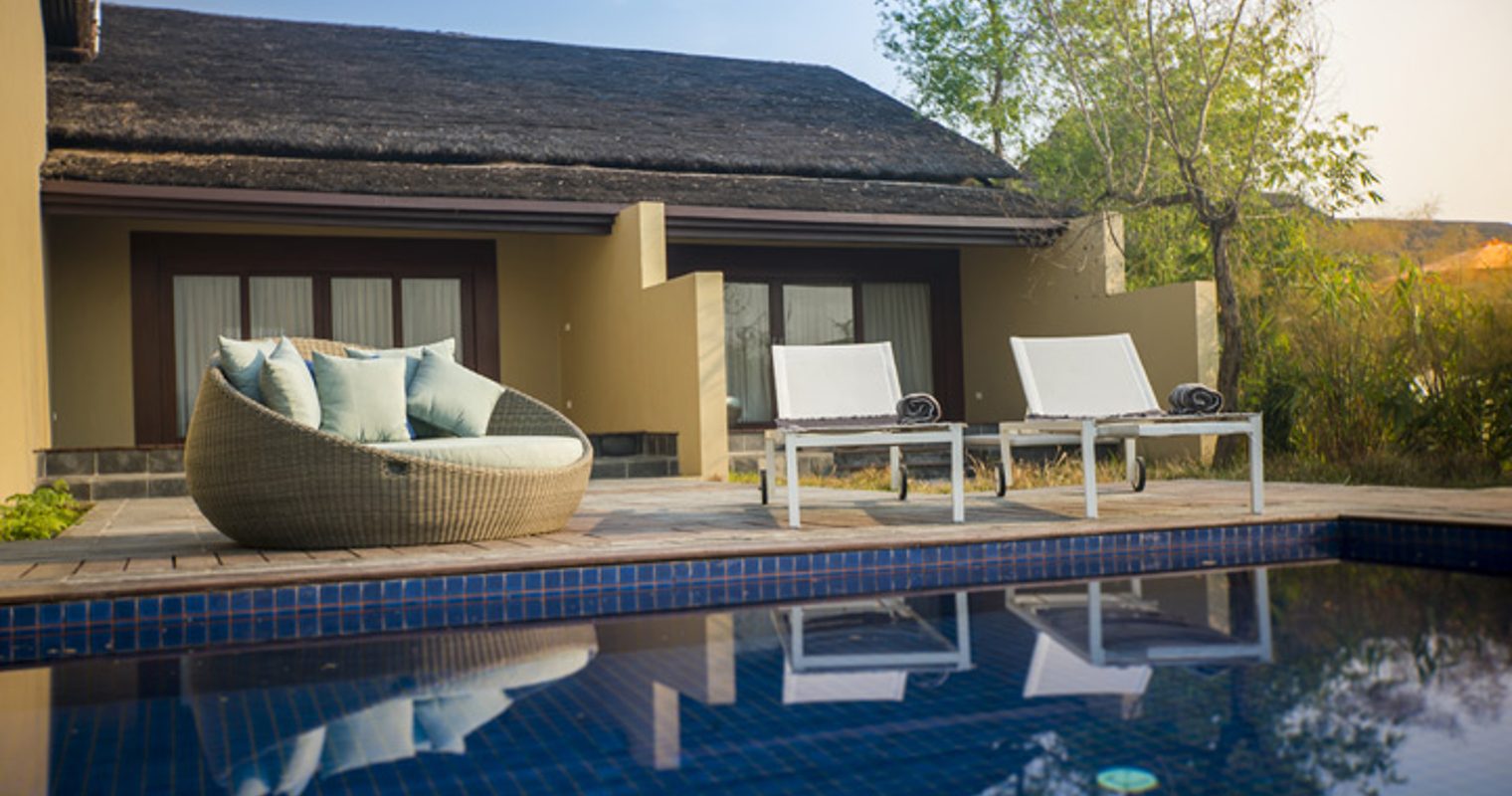 We love the Presidential Suite, Rapti Mahal with spectacular views of the Rapti River, after a day exploring unwind on your private viewing deck with plunge pool. Luxury Rapti Villas are decked out in pastel hues that create a calming sanctuary in the middle of the jungle. Each villa features spacious living areas with sprawling views of the Rapti River and the National Park. With private plunge pools in every suite and luxurious bathrooms adorned with traditional Nepalese stone spouts , you are tempted to while away your afternoon listening to the rhythm of the flowing river.