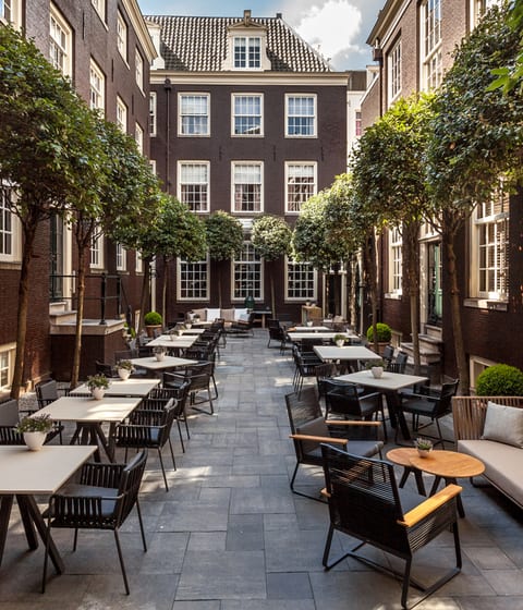 Step into the alluring maze of passages and stairways at Pulitzer Amsterdam. Combining a stretch of 17th century houses along the picturesque canals, this was once the setting for trade deals and home to Dutch aristocrats. Peaceful courtyards and gar...