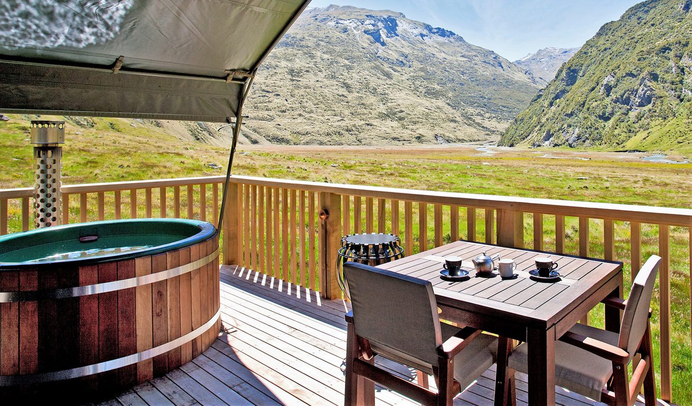 After resting your head back at the Station, it’s a jaw-dropping Heli drop off to the remote peak of Mount Burke. At 1535 meters, the views will literally take your breath away, stop and soak up the scenery before hopping on your bikes that are ready and waiting. A four hour downhill bike is next, crossing in between the stunning glassy blue waters of Lake Wanaka and Lake Hawea then refuel on a gourmet picnic in one of the most picturesque locations on earth. After this adventure packed day, head back to your enormous canvas safari tent and take a dip in the hot tub while you take in the stunning surroundings. Wake up raring to go, this time to the Remarkables Mountain Range, your private helicopter will whisk you up to 2300 meters and on the way check out the bird’s eye view of the Southern Alps below. Tear it downhill on your bikes to a secluded private hut, where you can stay overnight. There is nothing more unique and tranquil than this, with this level of exclusivity you shall be surrounded in luxury while feeling completely alone.
