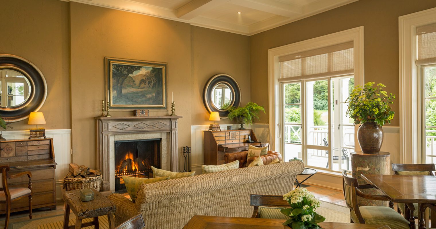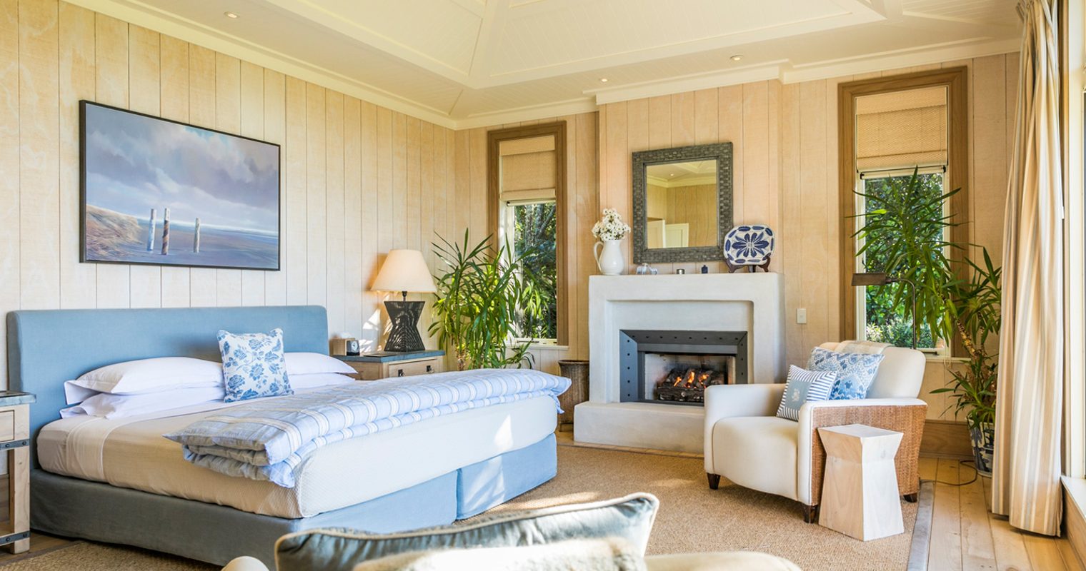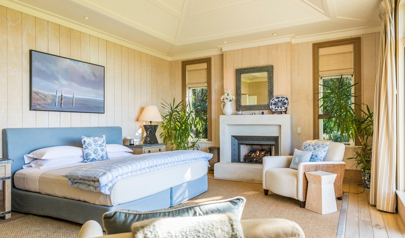 Rosewood Kauri Cliffs consists of eleven outlying guest cottages, each with two guest suites which makes twenty-two rooms on the estate. Every suite has its own private porch, open fireplace, walk-in closets and a luxury bathroom. The cottages are nestled on the edge of a sylvan forest overlooking the Pacific ocean and the green, green grass of the golf course.