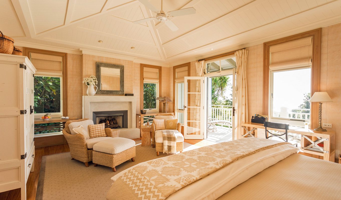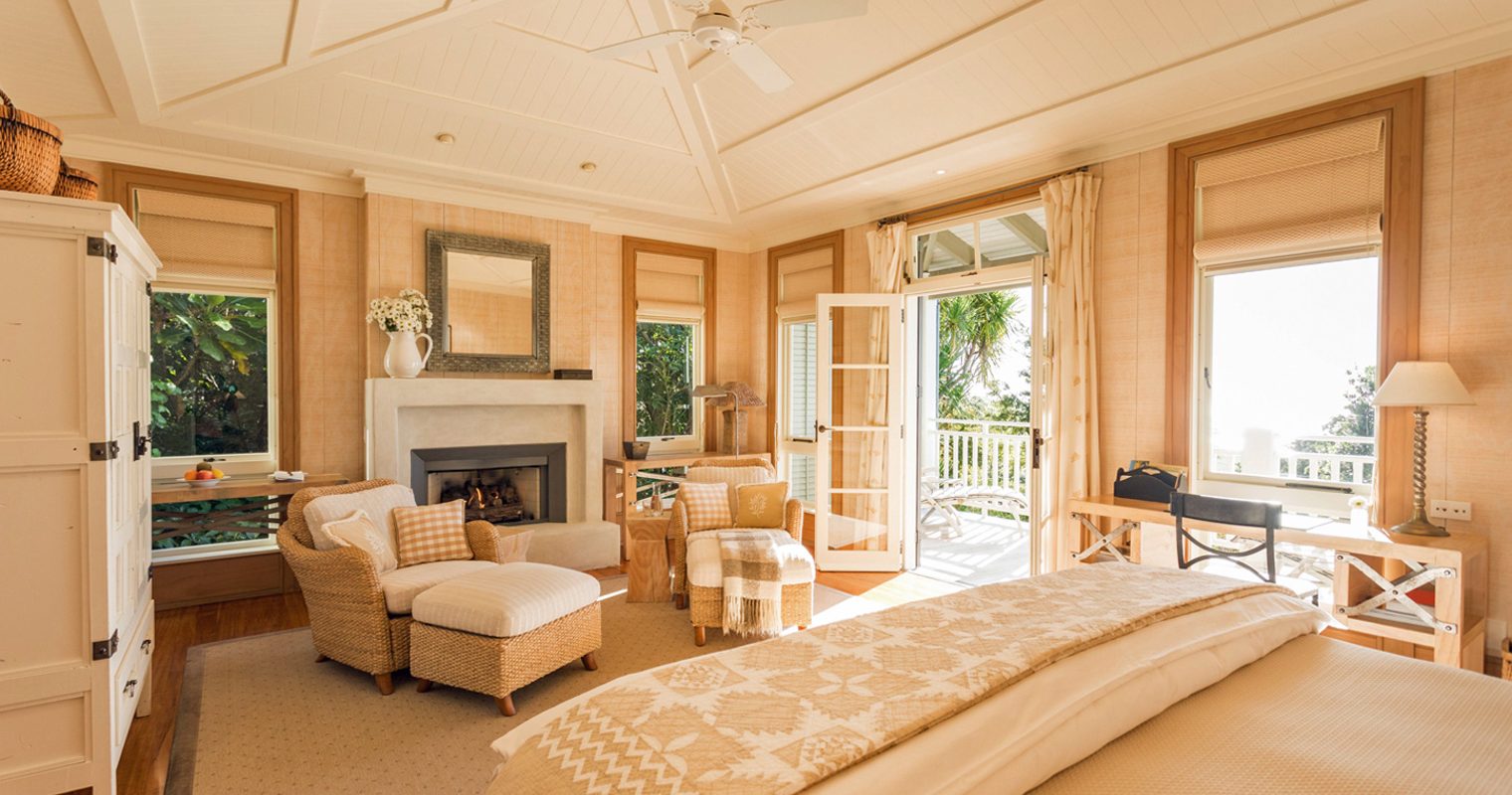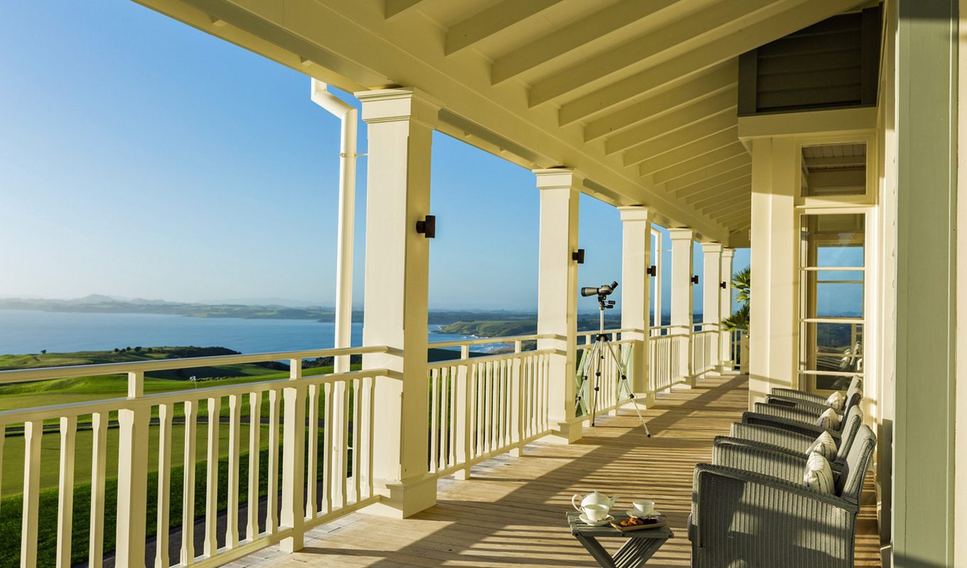 Rosewood Kauri Cliffs consists of eleven outlying guest cottages, each with two guest suites which makes twenty-two rooms on the estate. Every suite has its own private porch, open fireplace, walk-in closets and a luxury bathroom. The cottages are nestled on the edge of a sylvan forest overlooking the Pacific ocean and the green, green grass of the golf course.