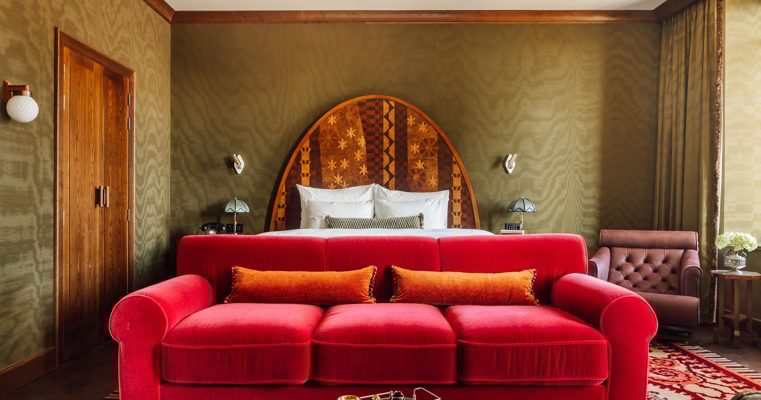 Each of the hotel’s rooms celebrates Art Deco sophistication through considered details: oak parquet floors, hand-knotted rugs, and marble bathrooms. The Junior Suites elevate the experience with Murano glass chandeliers and bleached oak four-poster beds. Custom furnishings feature fabrics inspired by Norwegian artist Gerhard Munthe, while deep-soaking tubs in dusty pink marble offer a calming oasis from the (admittedly already laidback) city.