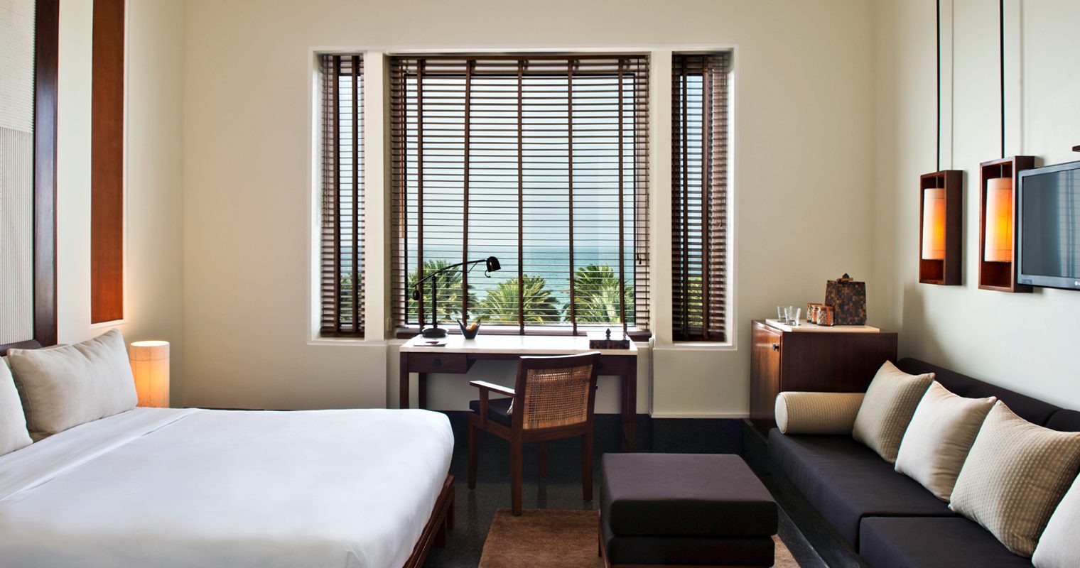 Reserve any one of the hotel’s 158 rooms and you’re in for a real treat. The all-encompassing beauty of the Gulf of Oman and the Jhajjar Mountains are only made better by oversized windows, sky-high ceilings and minimalist décor. Here, the landscapes give as much to the hotel as the furnishings. Step inside and it’s plain to see that The Chedi has truly mastered the art of marrying luxury with minimalism as well as cultural tradition.