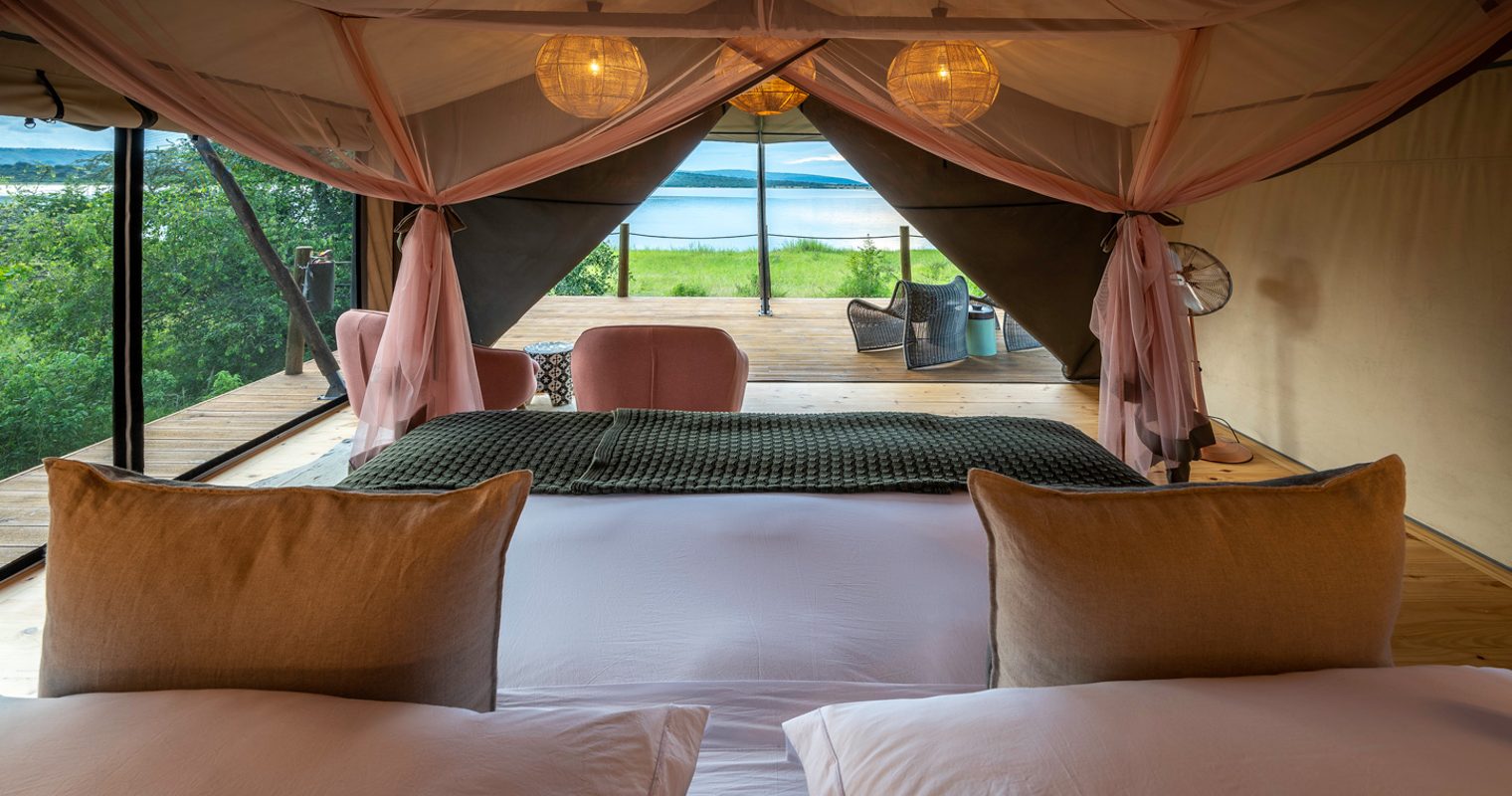 Close to the Tanzanian border, Akagera National Park is Rwanda’s answer to your big game safari. A vast wetland, its acacia groves, swamp fringed lakes and rolling plains offer refuge for the country’s savannah adapted species. Catch an enticing first glimpse from the luxurious tented Magashi Camp, set on stilts overlooking Lake Rwanyakazinga before spending the next three days off in search of game. Traveling by jeep, foot or boat, there is so much to see here. Lions were re-introduced to the park in 2015 after a 20-year absence, adding a frisson of big game to your experience. But Akagera also excels in the smaller details with a thriving bird population courtesy of its wetland setting. Enjoy one last night drive in this exclusive corner of the park before jumping in a helicopter the next day for a whole other wildlife experience.