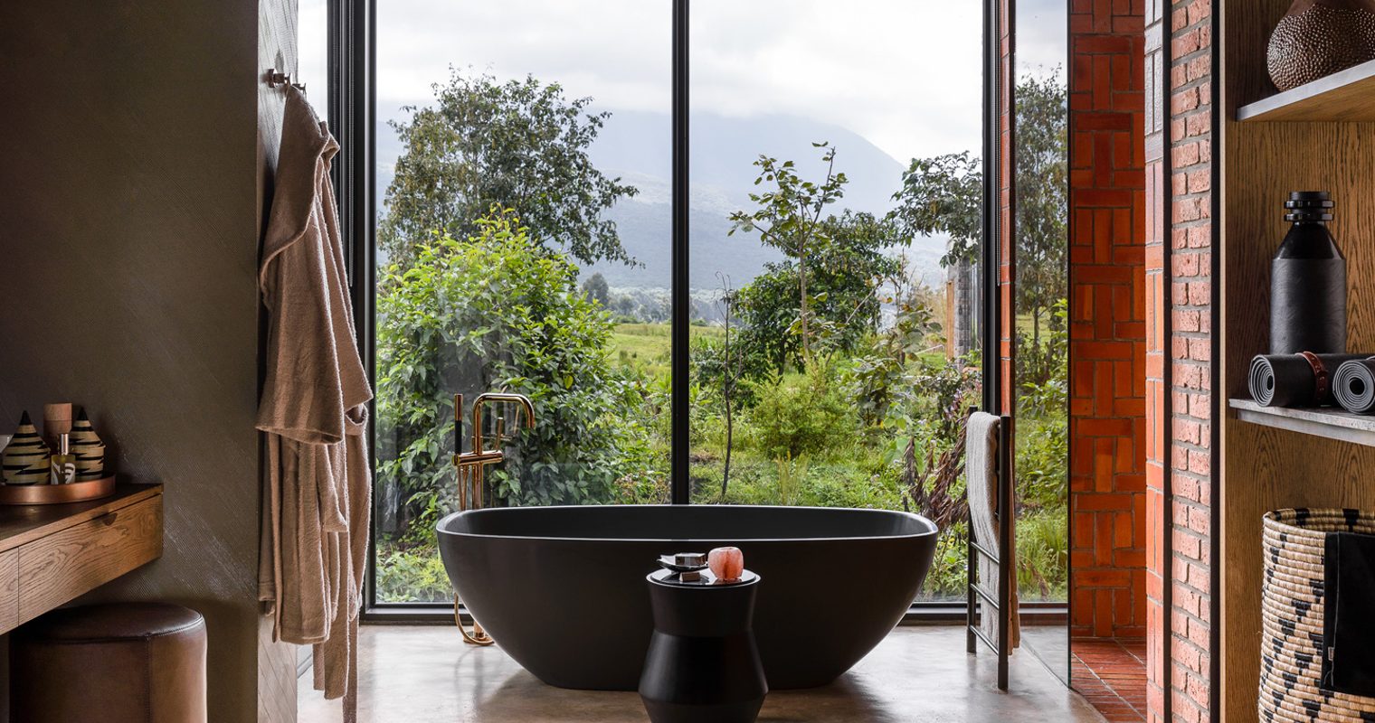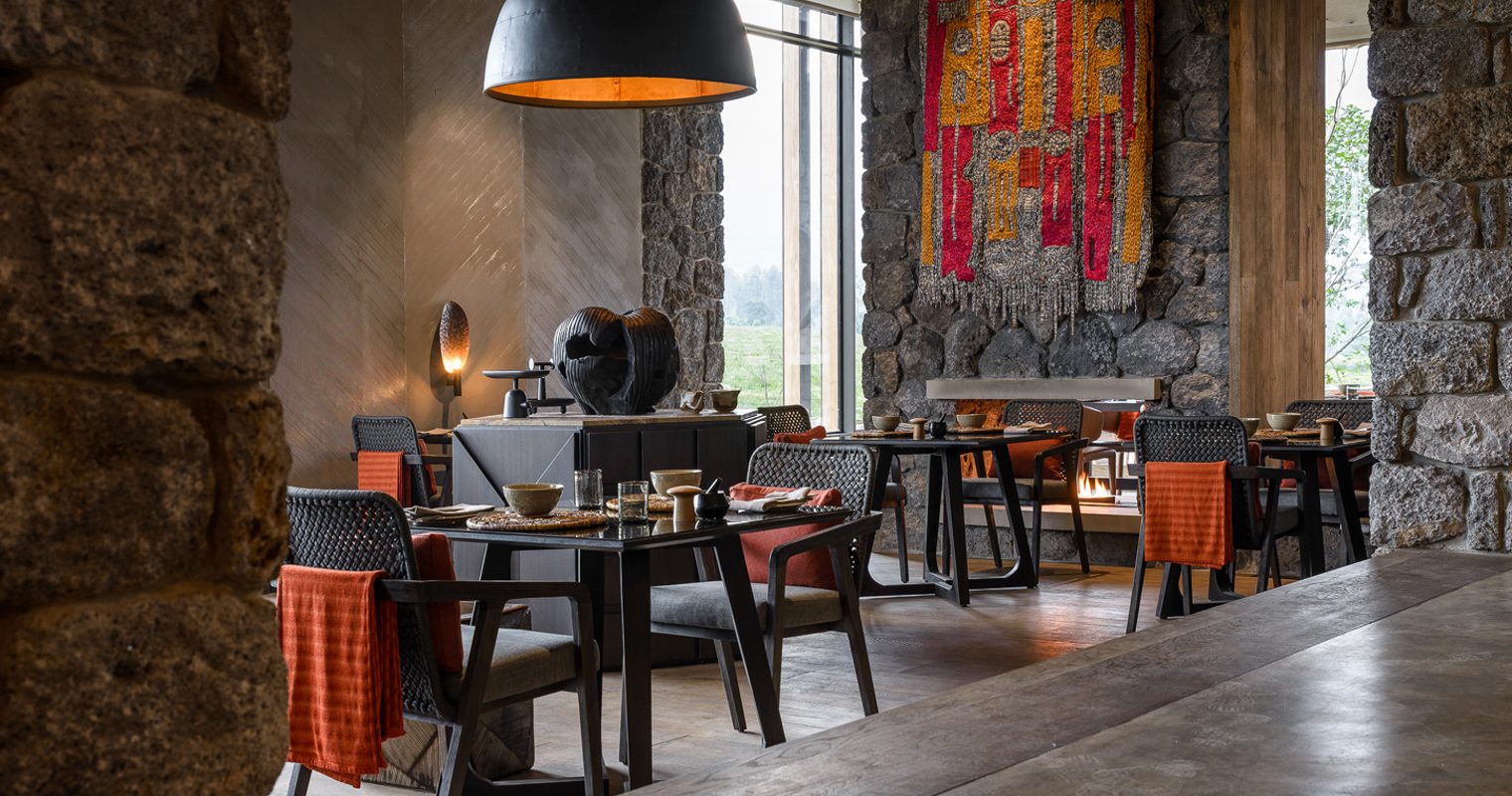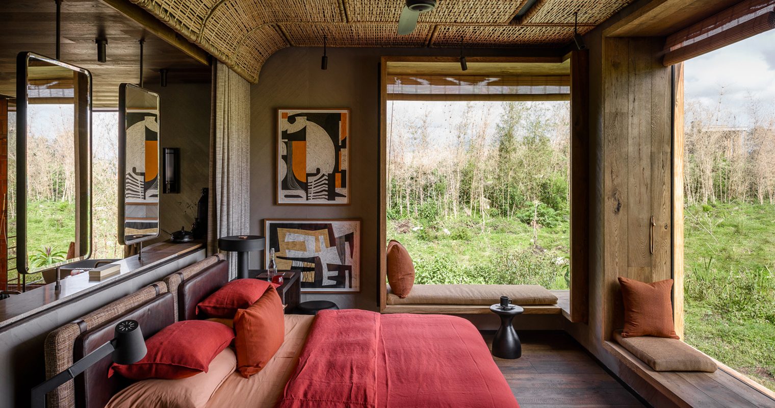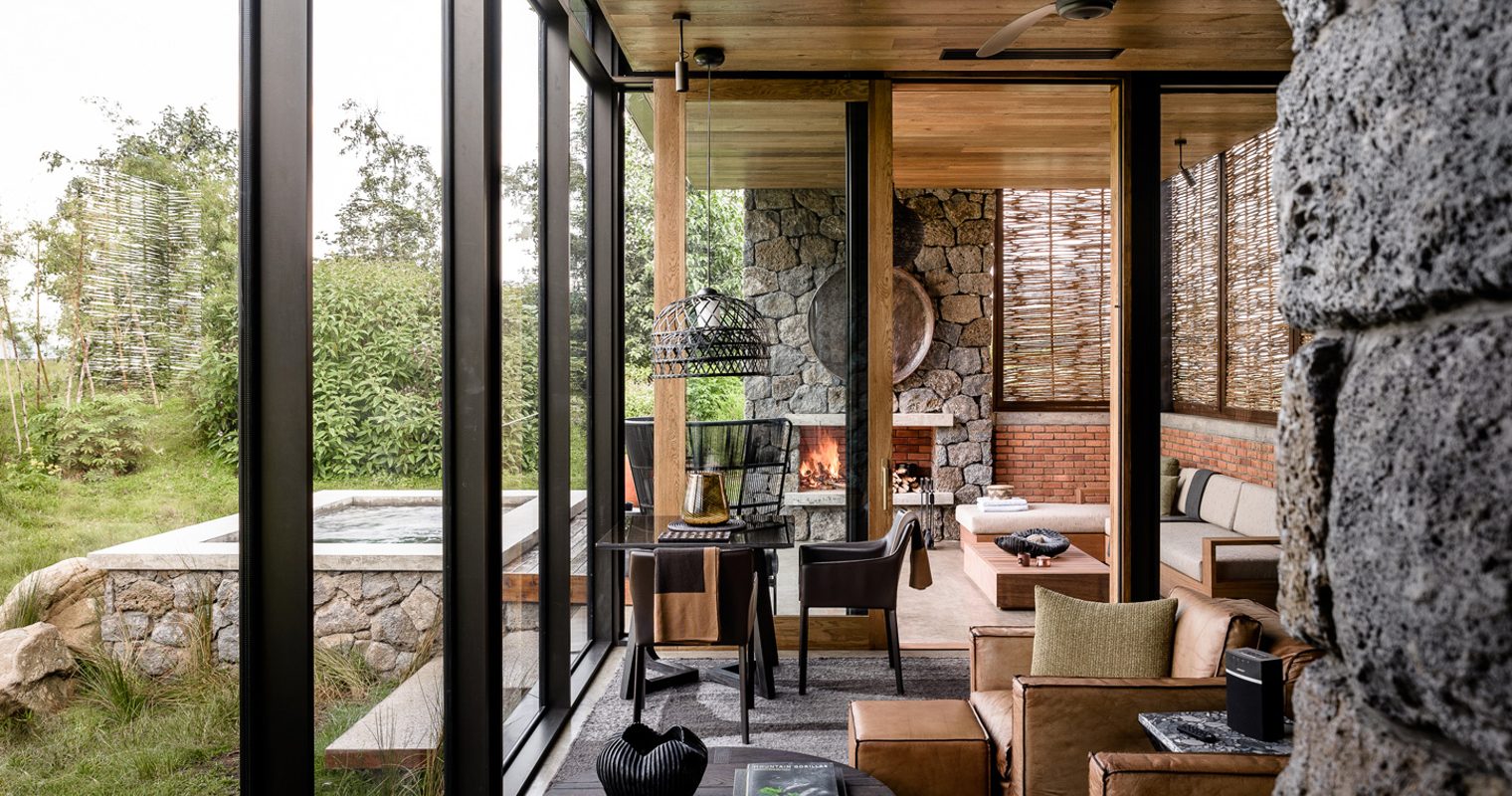 A unique feat of contemporary architecture, nestled amid the lush landscapes of Rwanda’s Volcanoes National Park, Singita Kwitonda Lodge is redefining the gorilla tracking experience. From the outside, you’d easily lose this luxury lodge within the landscape but all that changes on stepping inside. Whether it’s the eight suites, the outdoor firepit or the central hub, natural materials such as volcanic rock and river stone have been used to masterful effect in creating a striking design full of local touches, bright colors and luxurious undertones.