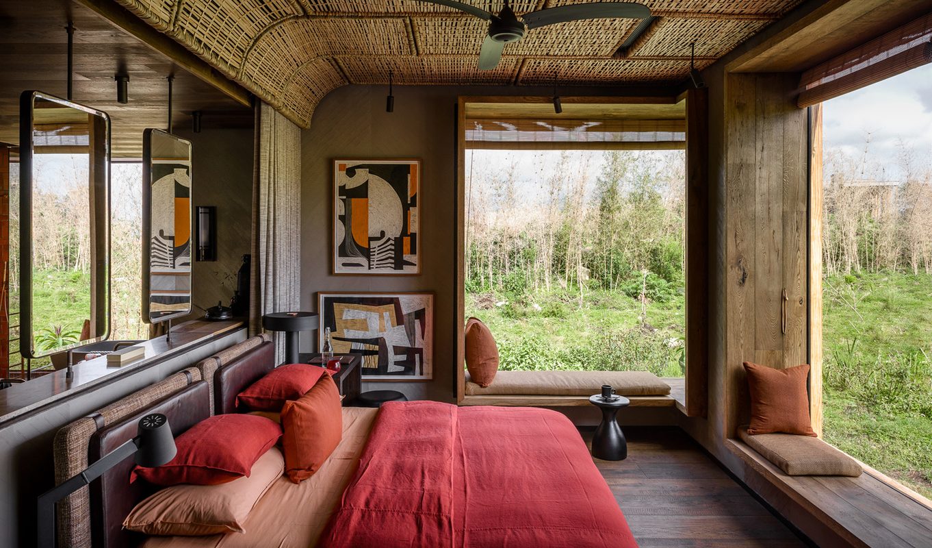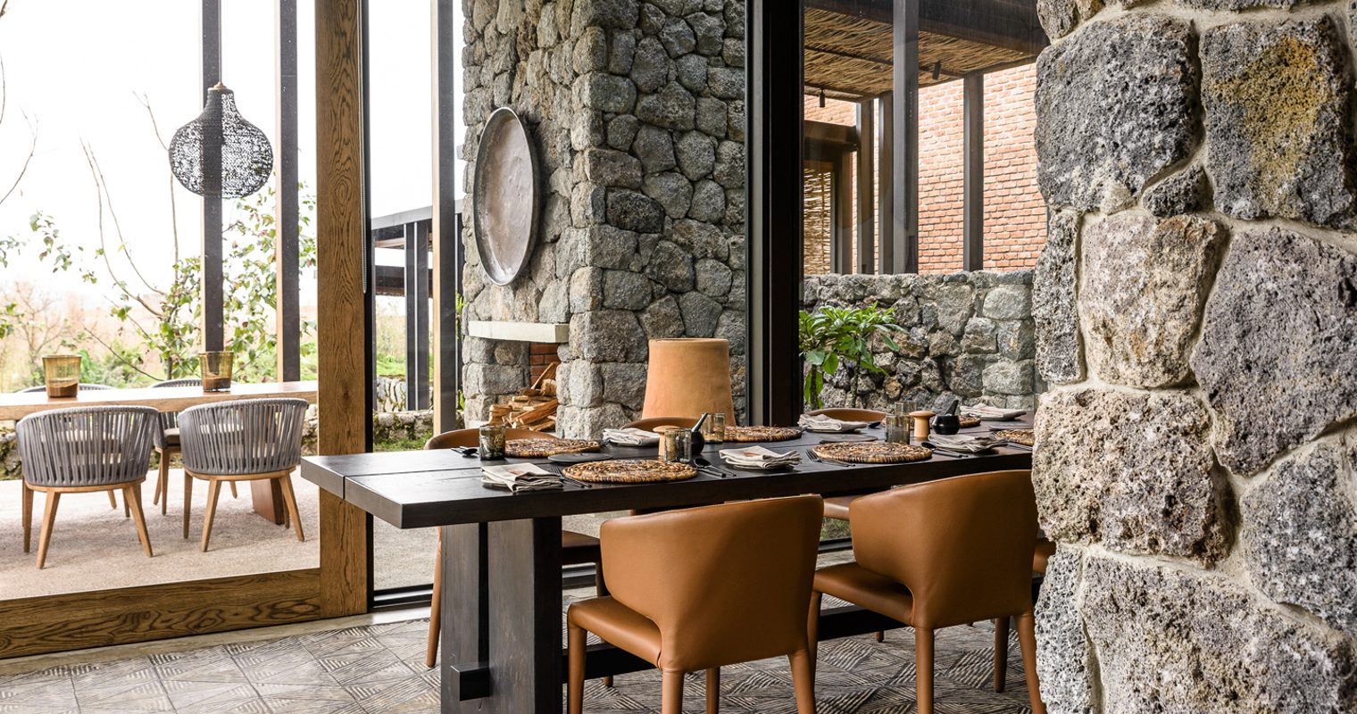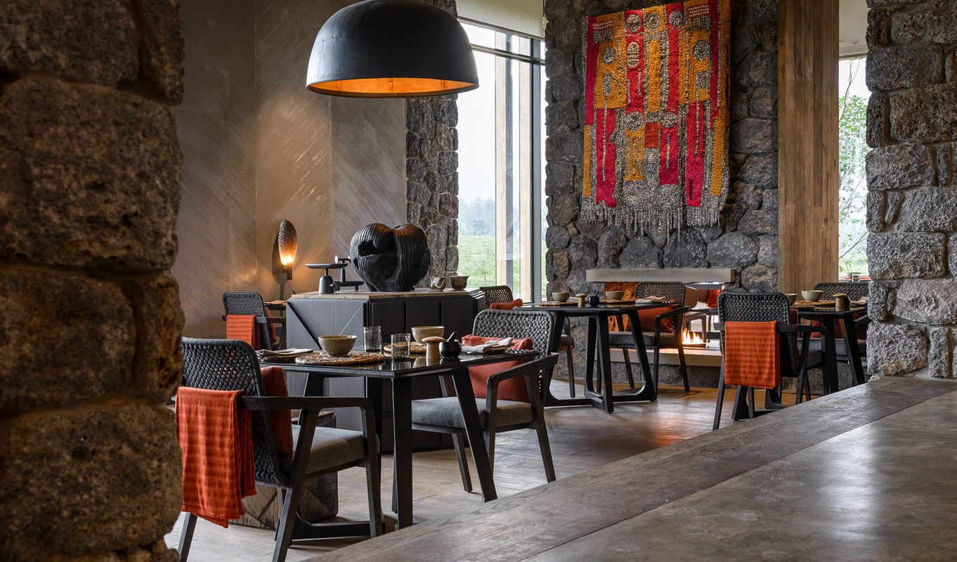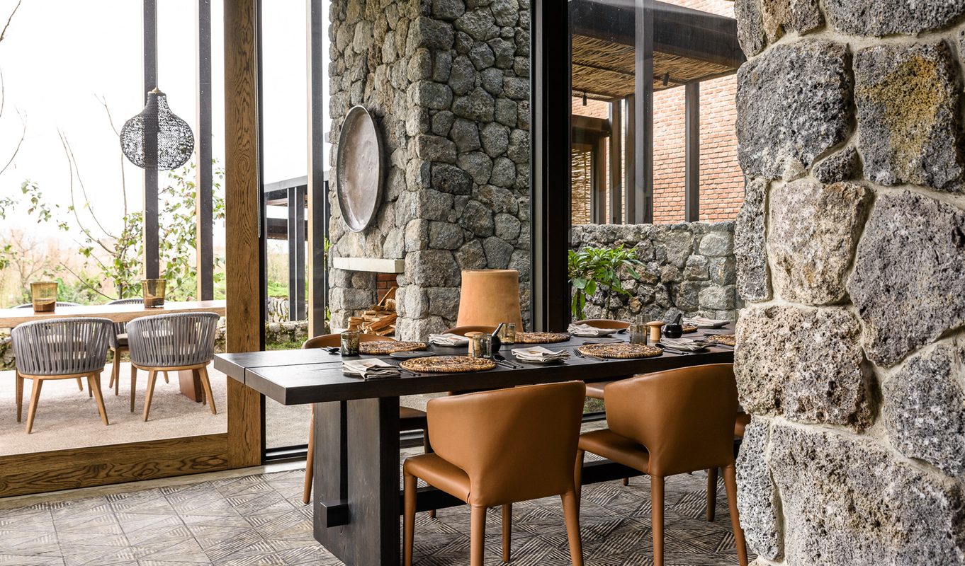 A unique feat of contemporary architecture, nestled amid the lush landscapes of Rwanda’s Volcanoes National Park, Singita Kwitonda Lodge is redefining the gorilla tracking experience. From the outside, you’d easily lose this luxury lodge within the landscape but all that changes on stepping inside. Whether it’s the eight suites, the outdoor firepit or the central hub, natural materials such as volcanic rock and river stone have been used to masterful effect in creating a striking design full of local touches, bright colors and luxurious undertones.