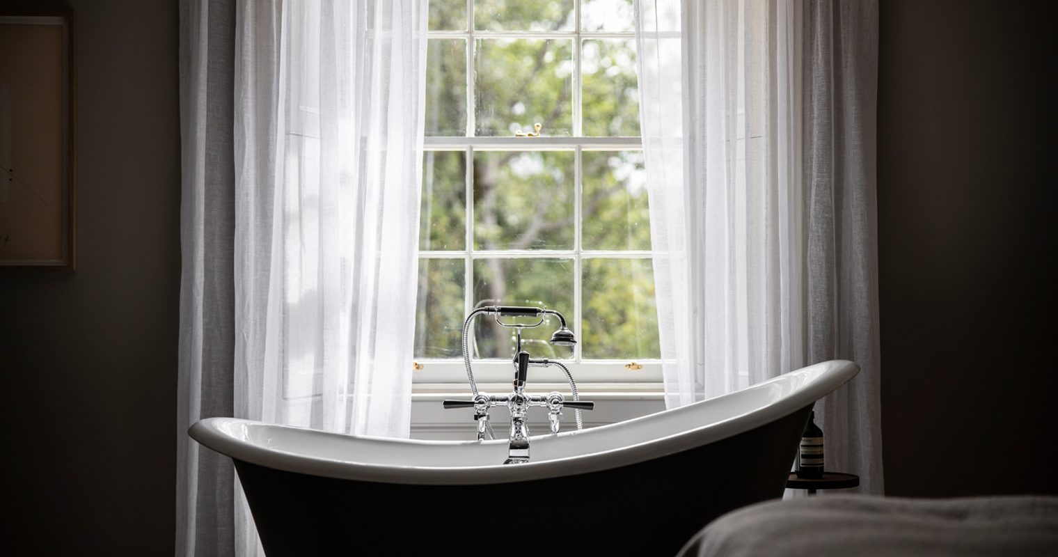 True to their Scandi roots and surrounding landscapes, the color scheme of each of the bedrooms is kept neutral with tones of heather, moss and mole. Crowned not by luxuriant king-size beds (though those are spectacular too), but by freestanding baths, the rooms at Lundies House are designed for the deepest relaxation. Our pick goes to the Gwendolyn where the bath sits in a large picture window overlooking the behemoth of Ben Loyal in the distance. But we also love the Flora, tucked away in the eaves of the manse with a romantic box bed beneath the window, as well as the Bothan which takes the humble butler’s abode and transforms it into a two-bed family home dripping in minimalist chic.
