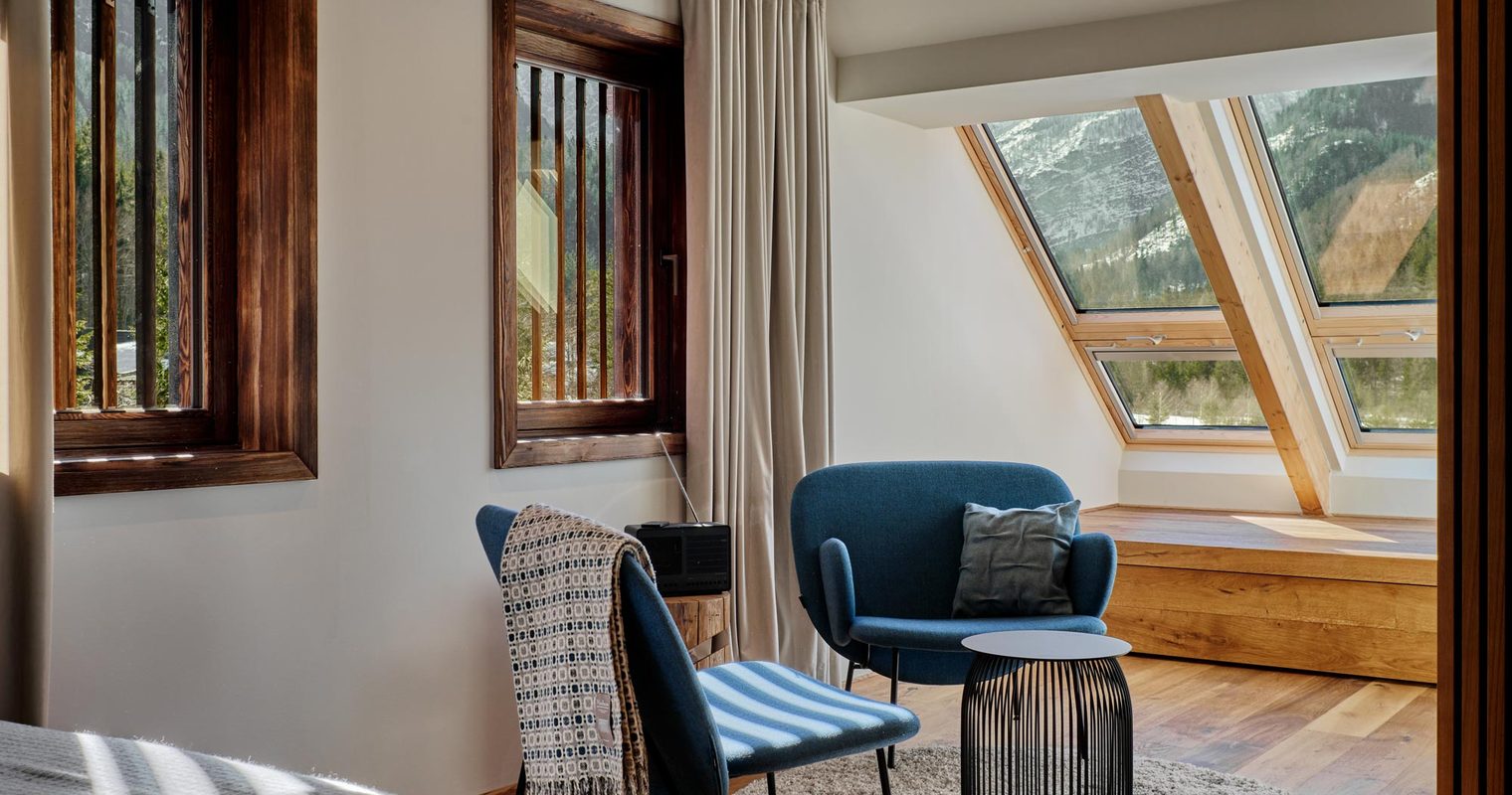 Decorated with Slovenian limestone and oak wood furnishings, each of Hotel Milka’s six rooms radiate minimalist design and alpine charm. With spacious terraces, private gardens, tucked away reading nooks, and an outdoor hot tub (we’d recommend the Garden Suite), the hotel’s variety of rooms offer plenty of ways to soak up the views of Jasna Lake and Triglav National Park.