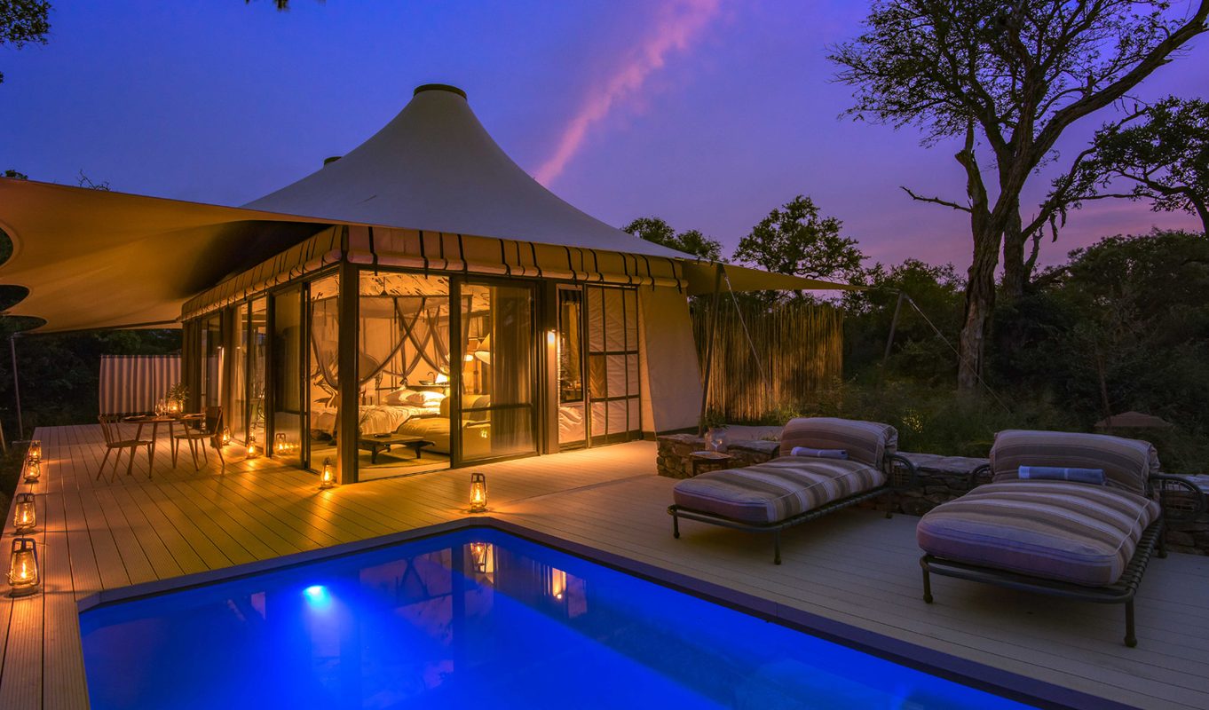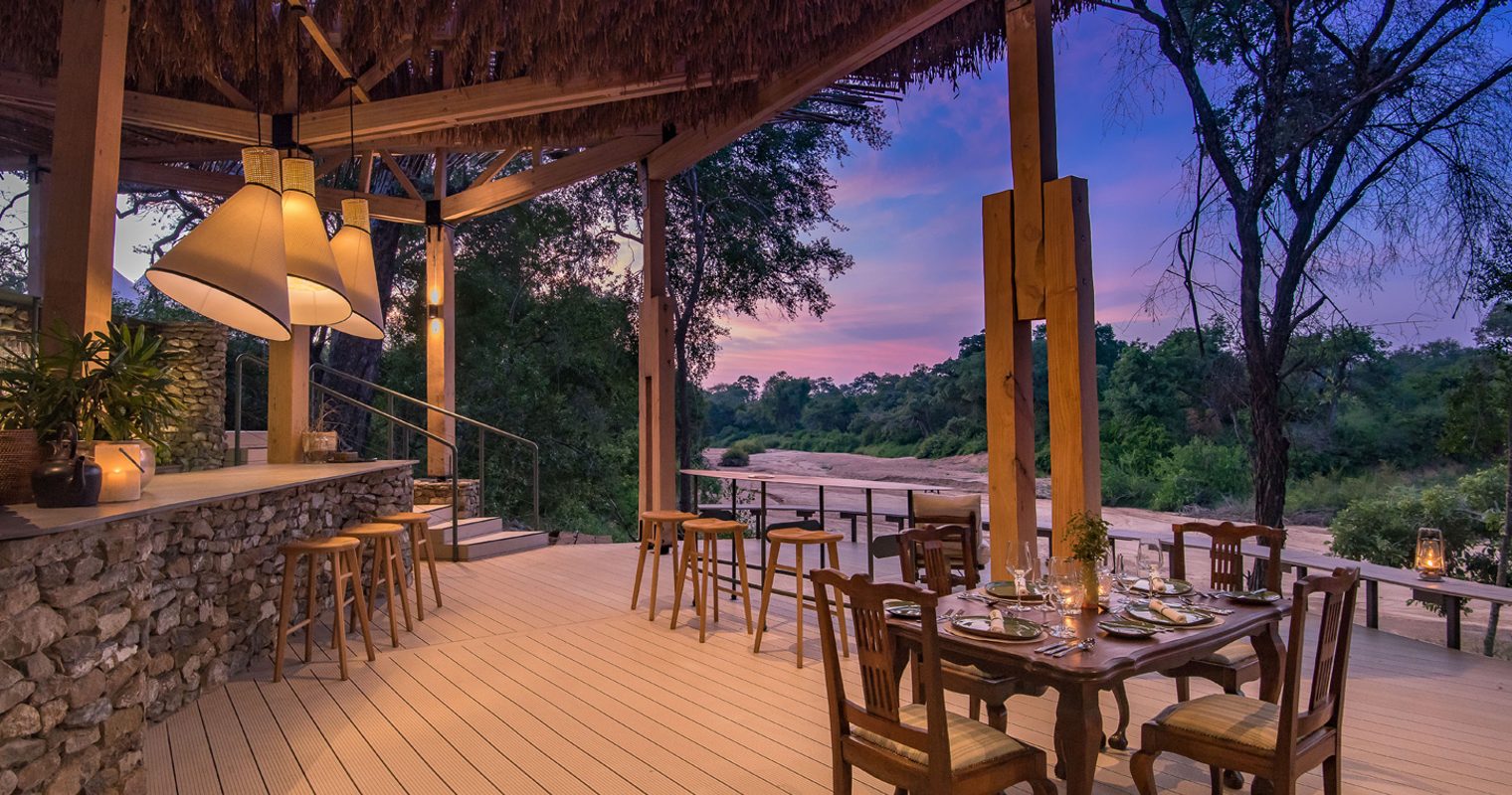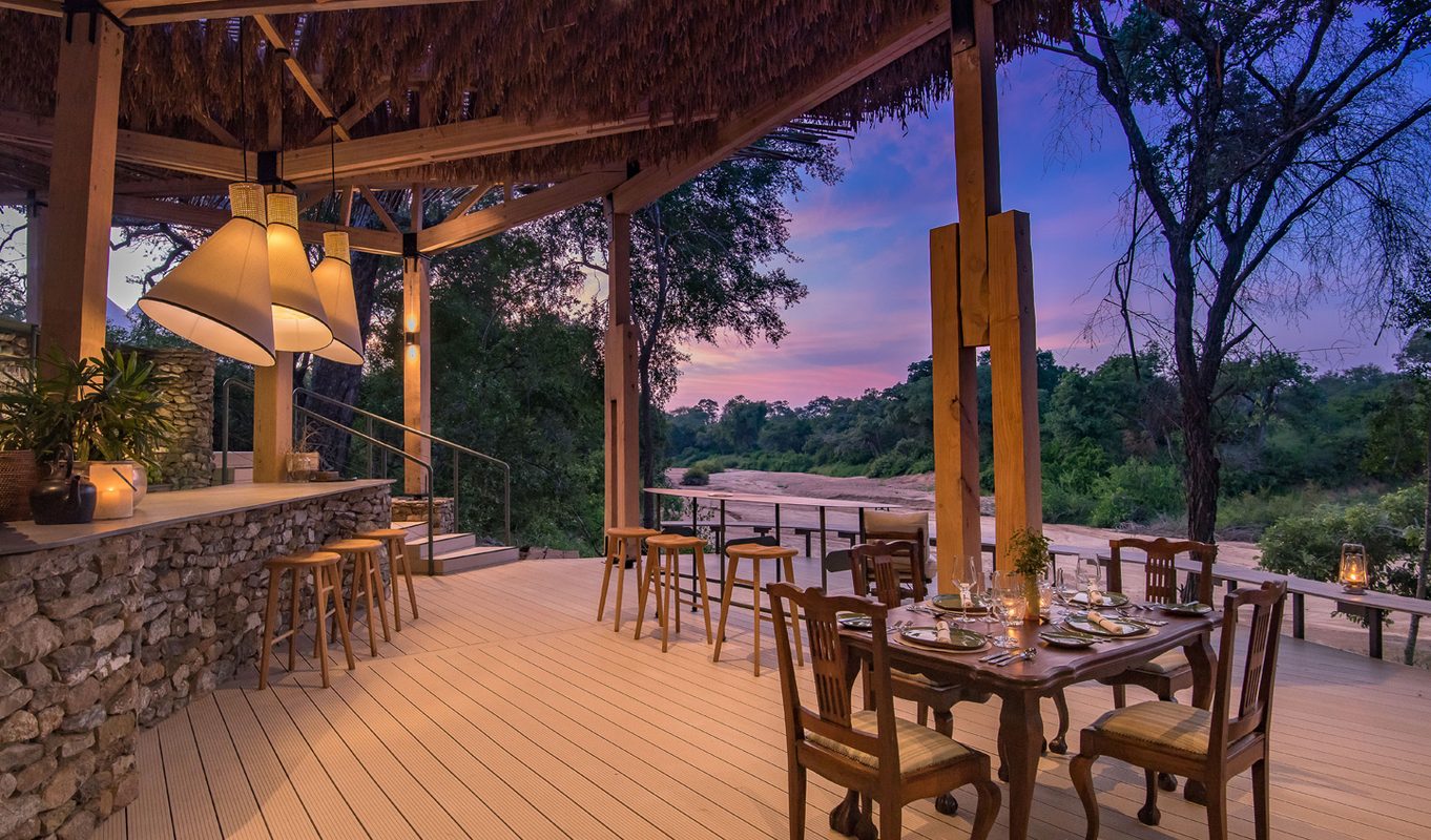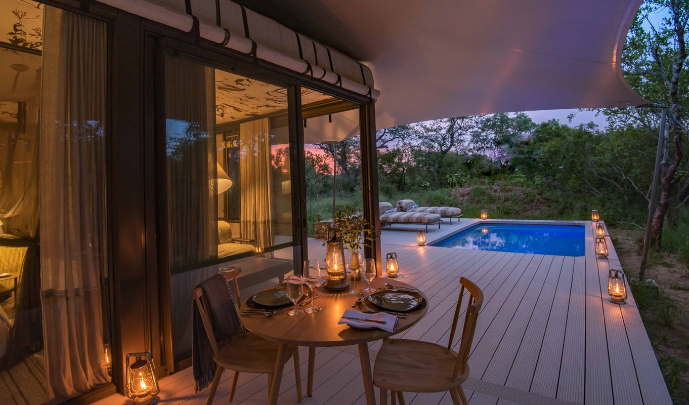 Drift off to the sounds of the animals rustling through the trees by your tented suite. These gorgeous, open-planned spaces embody that ‘safari’ feeling with contemporary African bush décor and botanical artwork sprawling across the canvas ceilings. Wide sliding glass doors open onto your own private terrace where plunge pools are surrounded by fauna and, for some, boast sprawling views of the riverbed. For family travel, the central lounge and dining area of the Leadwood Villa is idyllic for socialising and dining in privacy in between exhilarating game drives with your dedicated private safari vehicle and ranger.