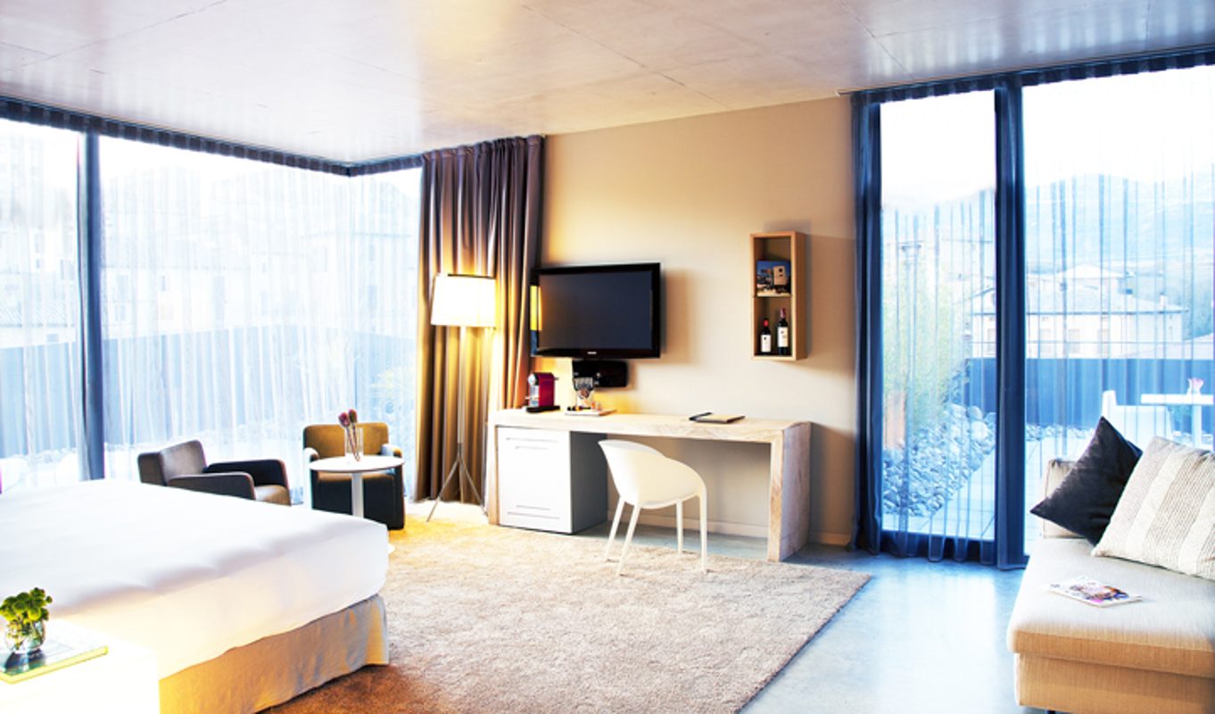 Carefully decorated and designed, enjoy the calming atmosphere of Hotel Viura’s rooms and suites. Underfloor bathroom heating, floor to ceiling panoramic windows and private terraces overlooking the streets of Villabuena de Álava and Ebro valley, provide guests with a luxury stay in the heart of a rural wine province.