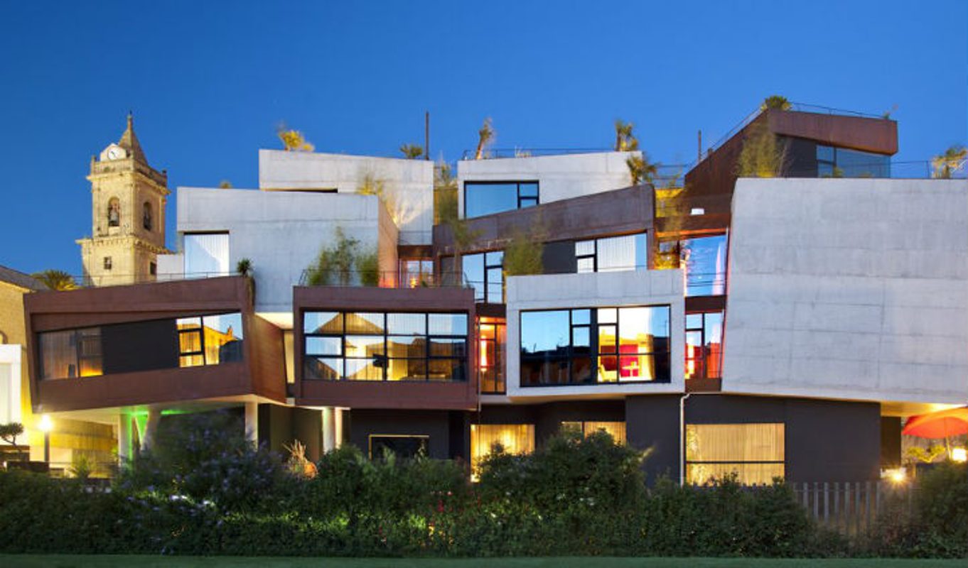 The strikingly edgy architecture of Hotel Viura promises an exceptional stay amongst beautiful vineyards and hillside. Architects Joseba and Xabier Aramburu created the contemporary piled boxed building with the regions rich wine culture at the heart of their design.