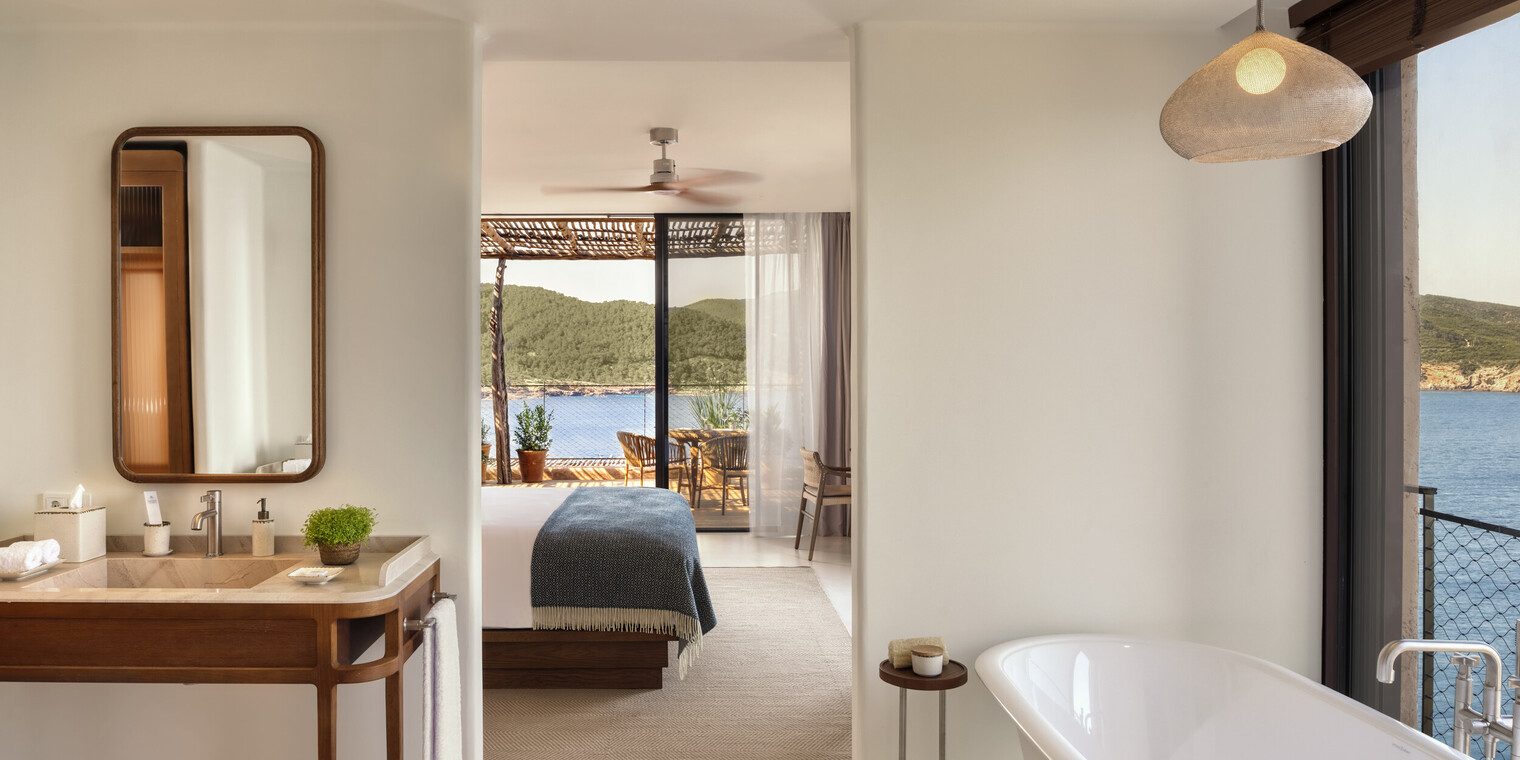 There is a pervading sense of wellbeing to every aspect of a stay at Six Senses Ibiza, but in a subtle way that still allows you to feel indulged. It starts with the yoga mats provided complimentary in each room, perfect for catching the early morning sun out on the terrace. It then continues through carefully crafted menus by celebrity chef Eyal Shani, with a focus on produce grown on the hotel’s own farm, and onto biodynamic wines and a juice bar. This wellness, needless to say, culminates in the spa where catacombs that double as treatment rooms offer everything from established massages to pioneering techniques. There are hangover cures and 528Hz facials that aid DNA repair, as well as full-blown wellness retreats that can shape your stay, should you wish them to.