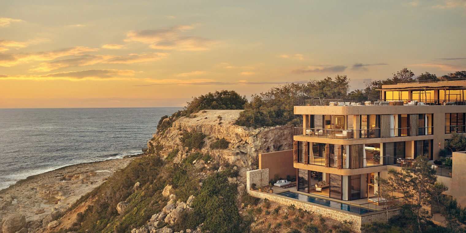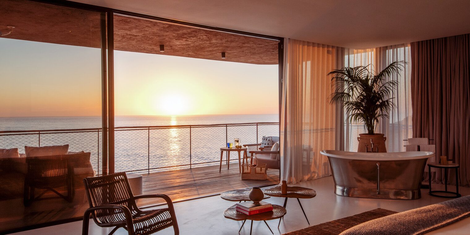 Whether opening onto private Mediterranean courtyards or peering out from the cliff face, the 137 rooms, suites, 19 townhouses and 2 mansions of Six Senses Ibiza are united by a deep sense of privacy. The design is both light-filled and contemporary, with panoramic terraces and cavernous bathrooms. But it is also deeply respectful of local heritage with natural materials and warm hues of moss green and dusk pink that soothe the soul. There’s plenty of scope for innovation too, no more so than in the Cave Royale where a grand piano and full bar take center stage before giving way to a secret door and an adjoining recording studio. For those traveling with friends or family, the townhouses offer a space to call your own with private pools and gardens and plenty of space to entertain.