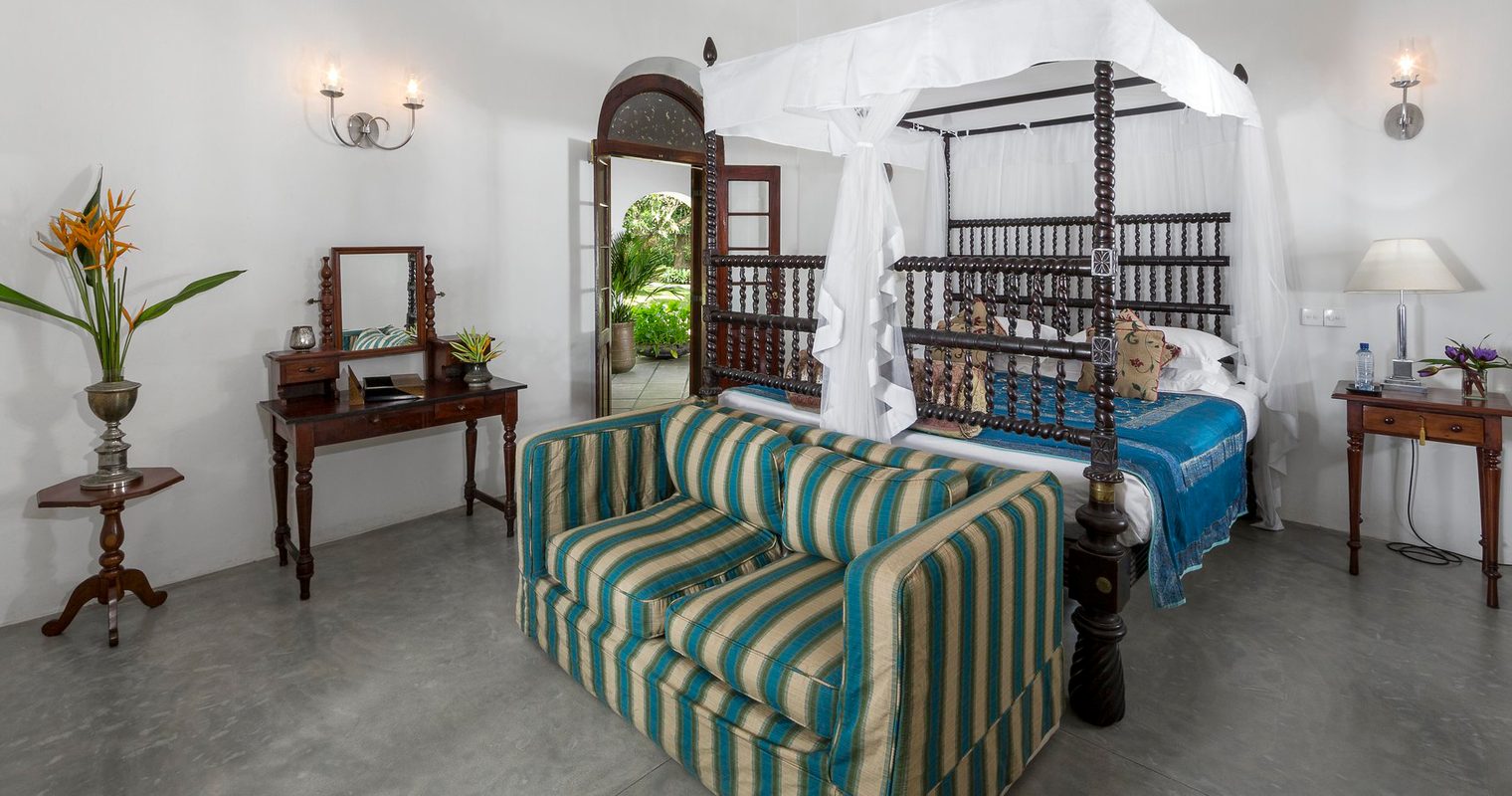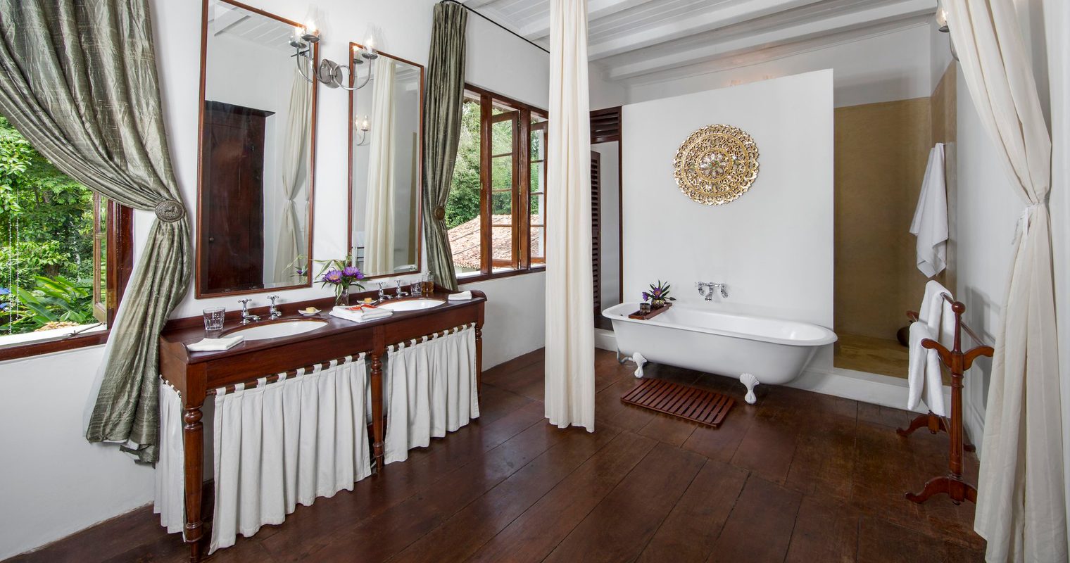 Each of the nine amazing bedrooms takes their name from a variety of Kandyan butterfly, such as the Monkey Puzzle and the Cornelian. No matter which room you stay in, you can collapse into your huge four poster bed draped in mosquito netting and surrounded by plenty of colonial Sri Lankan touches with drapes of silk and cotton. We absolutely love the floor to ceiling windows overlooking Ratwatte Walauwa’s great courtyard and gardens.