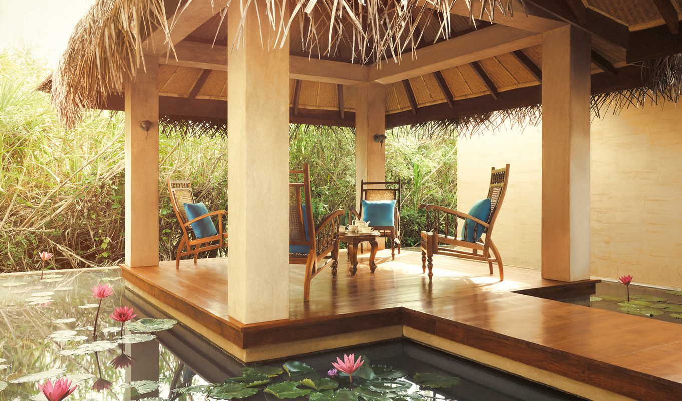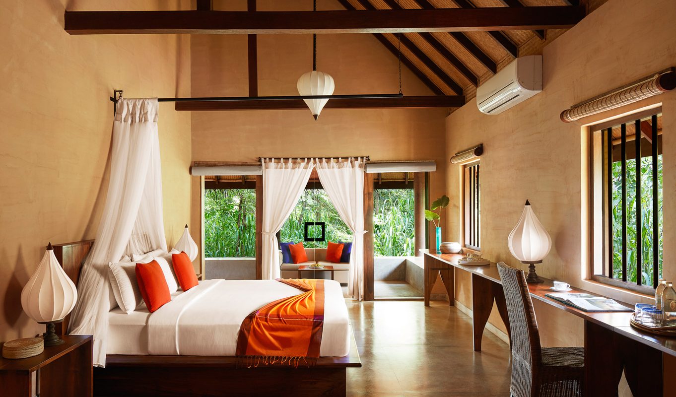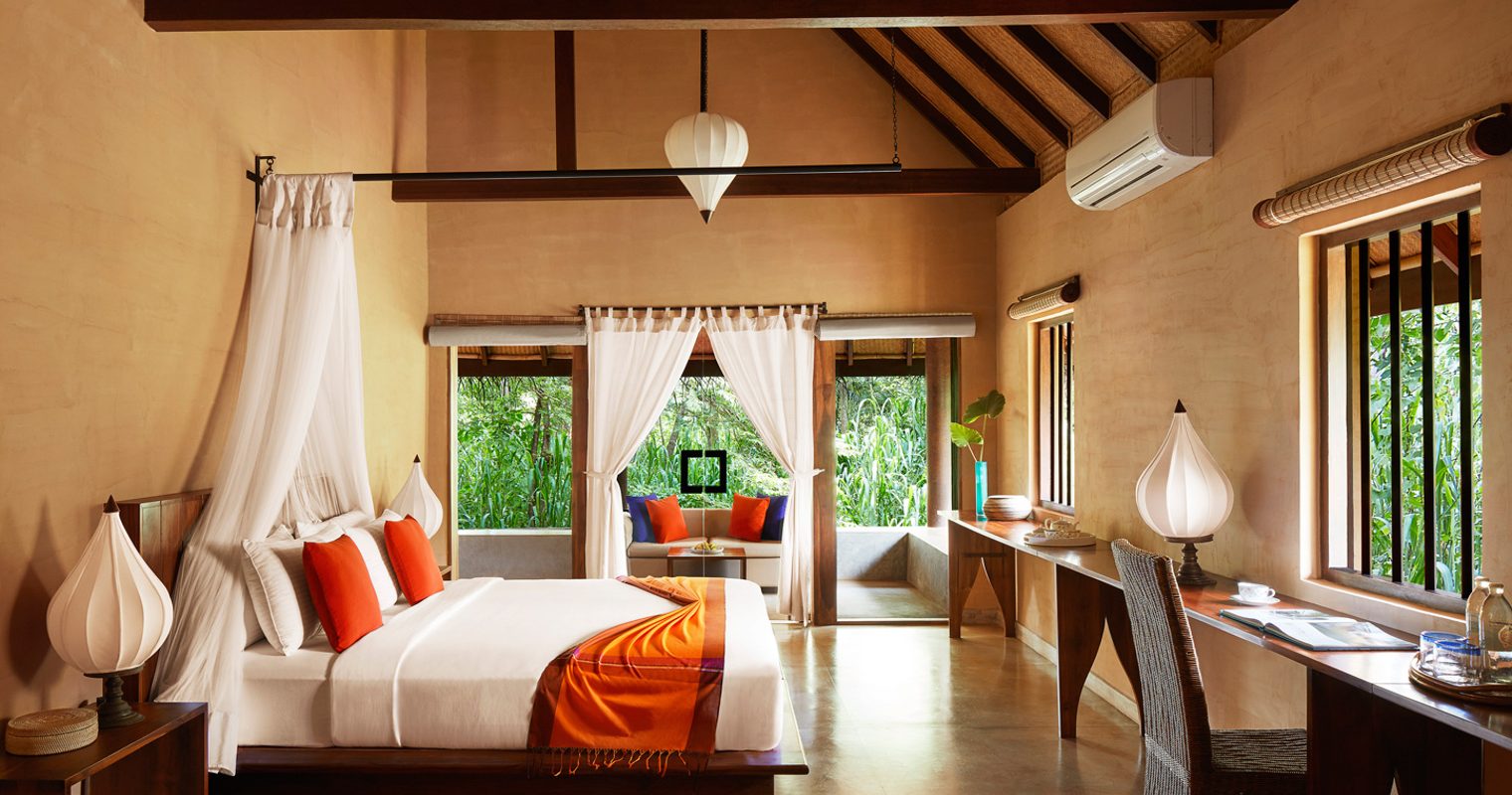 The 25 self-contained villas are set in three different habitats – water, paddy field and forest. We love the authentic rattan and bamboo ceilings and coconut palm thatched roofs for that rustic touch above your anything-but-rustic room. With huge king sized beds, flat screen televisions, Bose entertainment and amazing sunken bathtubs, you’re not exactly roughing it. They even give you your own sarong, slippers and umbrella. Is there anything they haven’t thought of? We don’t think so. In the larger villas you can even indulge in a private plunge pool on deck to soak in while you watch the local peacocks wander by. Hang out on your deck for a seriously intimate experience under the stars accompanied by the music of a few hundreds crickets. Perfect for that back-to-nature feel.