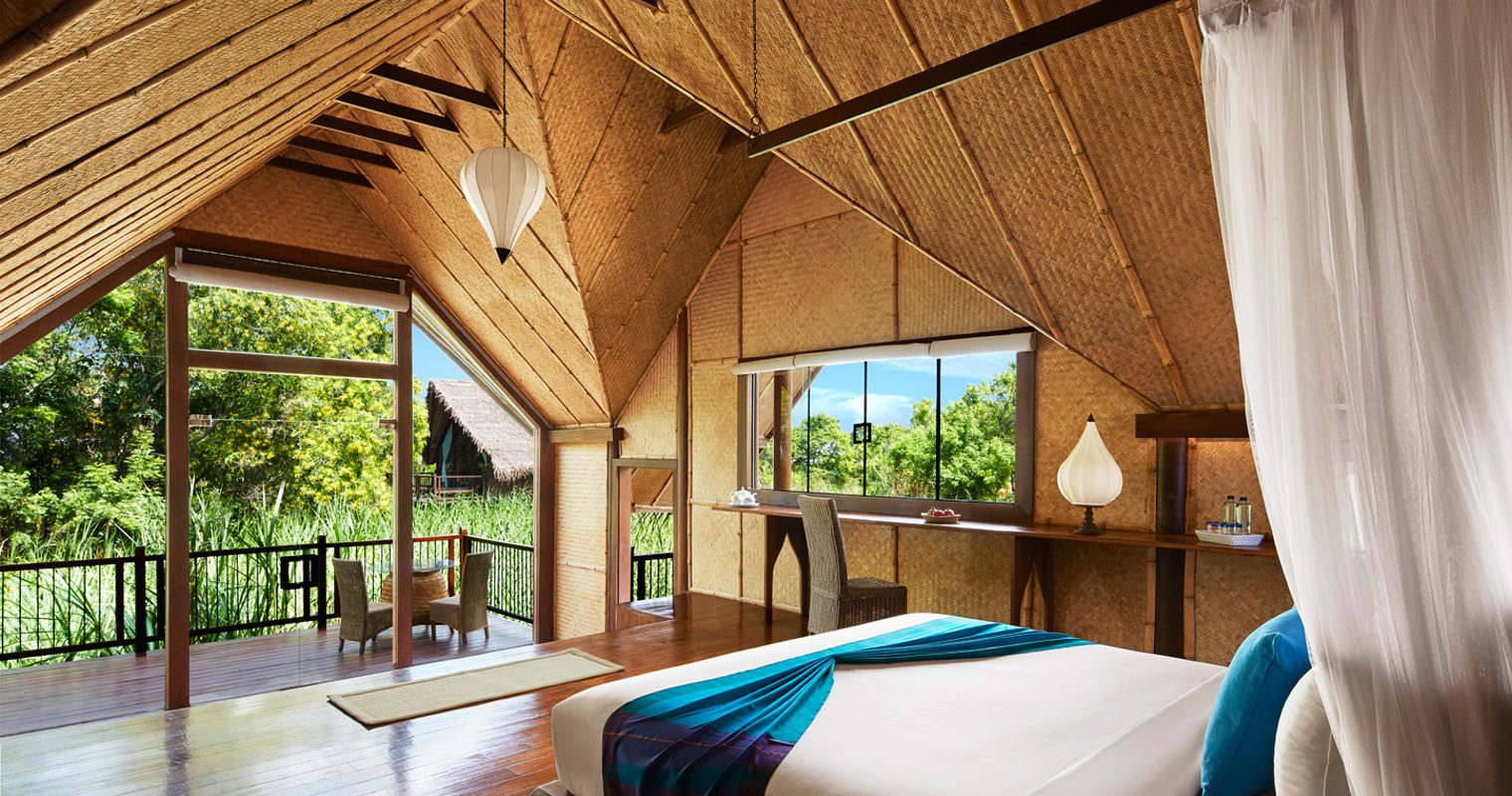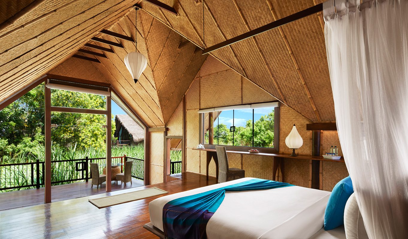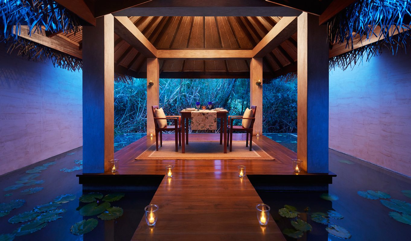 The 25 self-contained villas are set in three different habitats – water, paddy field and forest. We love the authentic rattan and bamboo ceilings and coconut palm thatched roofs for that rustic touch above your anything-but-rustic room. With huge king sized beds, flat screen televisions, Bose entertainment and amazing sunken bathtubs, you’re not exactly roughing it. They even give you your own sarong, slippers and umbrella. Is there anything they haven’t thought of? We don’t think so. In the larger villas you can even indulge in a private plunge pool on deck to soak in while you watch the local peacocks wander by. Hang out on your deck for a seriously intimate experience under the stars accompanied by the music of a few hundreds crickets. Perfect for that back-to-nature feel.