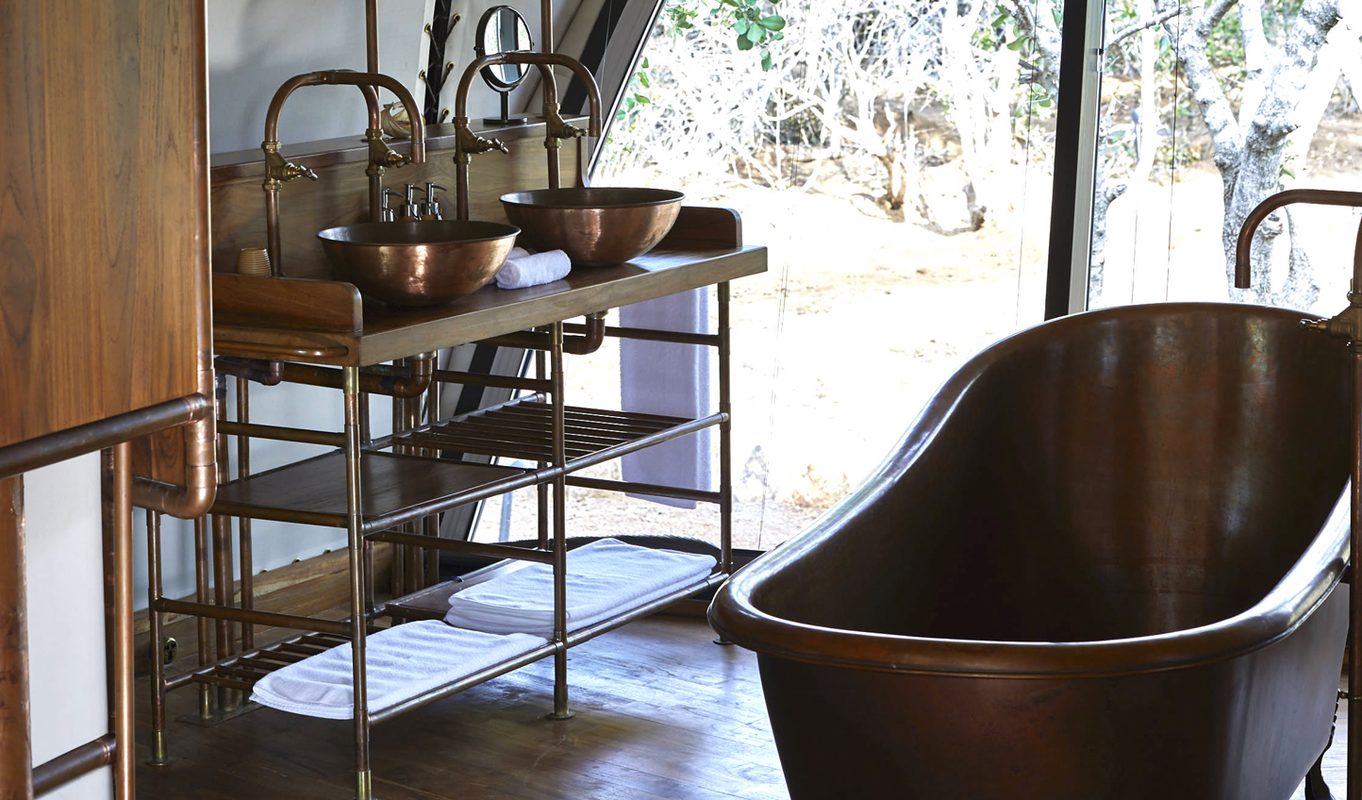 The walls may be made of canvas, but these are far from your ordinary ‘tent’. In fact, they are cocoons – warm and inviting with teak floors complementing dark leathers, freestanding copper bathtubs and silky-soft linens atop sumptuous four-poster beds. Clustered around water holes and with vaulted ceilings and panoramic jungle views, there’s wildlife to spot from the moment you wake up. Dotted along the beachfront, you’ll also find four more cocoons, each with their own private plunge pool. Whilst for those of you with the little urchins in tow? Wild Coast has an answer for that too with eight cocoons featuring adjoining ‘urchin’ tents, perfect for keeping the little ones entertained whilst still giving you that much-needed space for a bit of shut-eye.