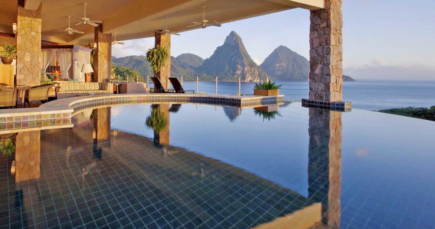 The views are what set Jade Mountain apart from the rest, and as difficult as it will be to pull yourself away from the comfort of your island sanctuary, don’t forget to venture up to the hotel’s celestial terrace just before sunset. Perched at the top of the property, you are granted a 360-degree view of ocean, beach, rainforest and mountains all to the backdrop of the pink-tinged sky brought on by the setting sun.