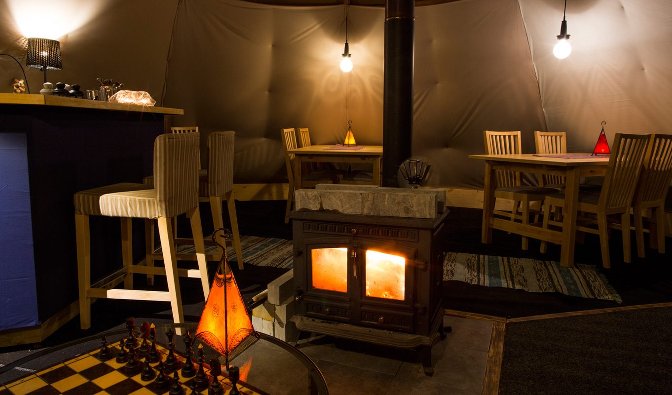 Your room at Aurora Safari Camp is a traditional Lavvu tent, a type of Nordic Tipi. The inside is fire-heated and comes complete with Arctic sleeping bags and comfortable beds. There’s another tent on-site providing a lounge and bar, as well as a traditional sauna close by, so you’ve got plenty of places in which to kick back and unwind after a day of arctic exploration.