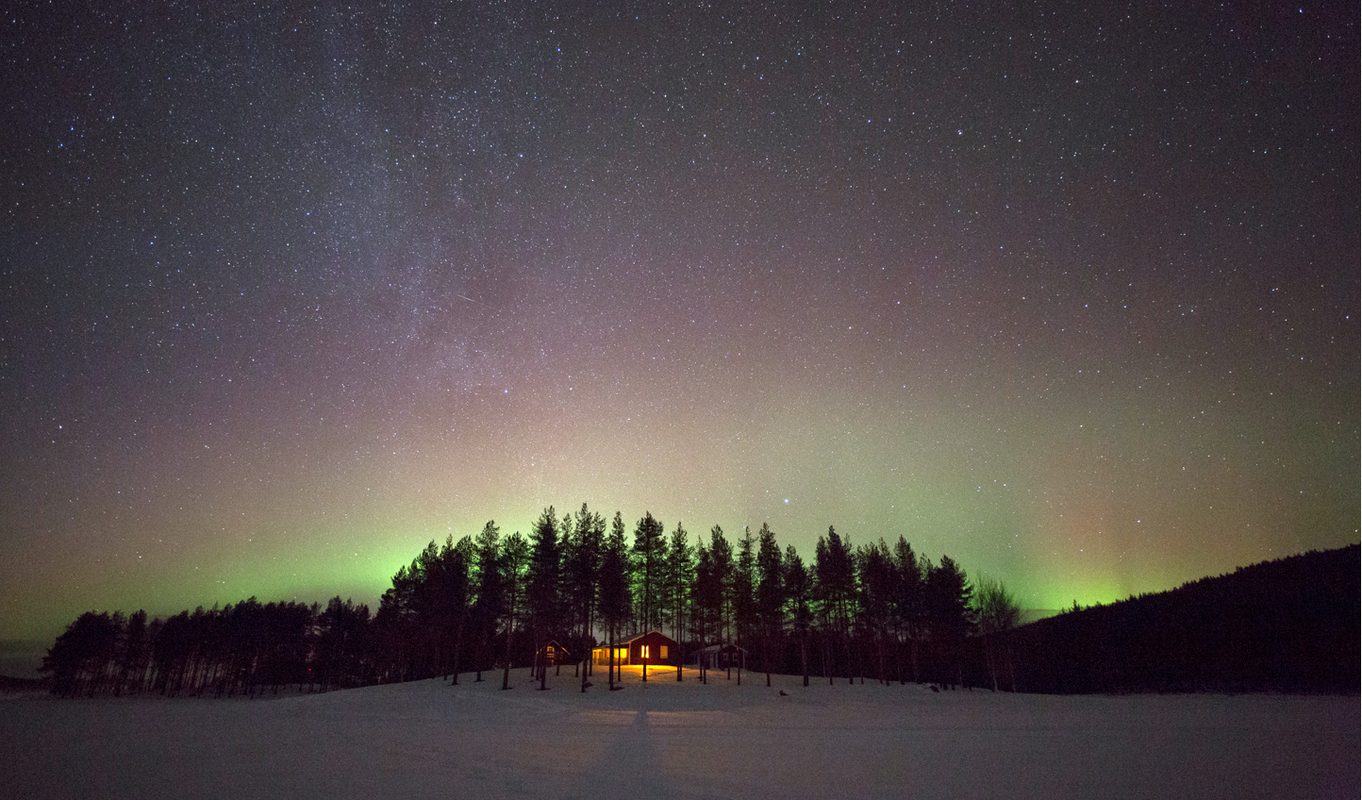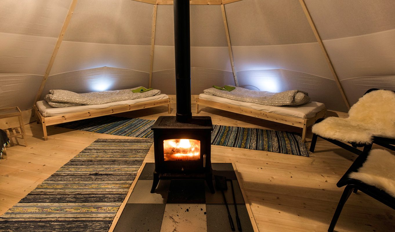 Aurora Safari Camp is nestled in the wild forest of the Råne River Valley north of Luleå, a positioning that offers stunning views of the surrounding river, lake and mountains.